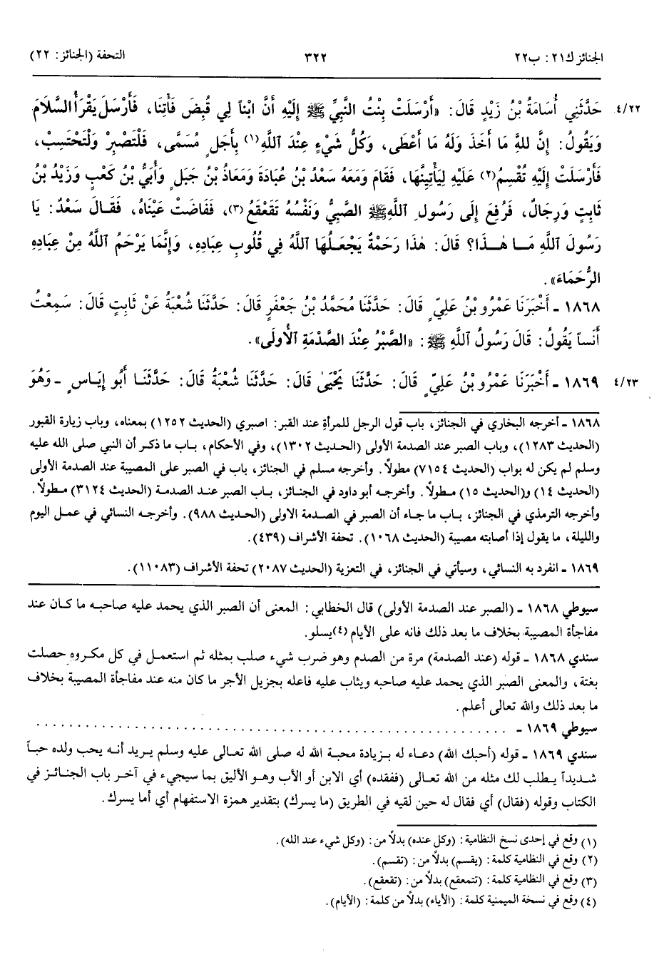 1868 - أَخْبَرَنَا عَمْرُو بْنُ عَلِيٍّ قَالَ حَدَّثَنَا مُحَمَّدُ بْنُ جَعْفَرٍ قَالَ حَدَّثَنَا شُعْبَةُ عَنْ ثَابِتٍ قَالَ سَمِعْتُ أَنَسًا يَقُولُ قَالَ رَسُولُ اللَّهِ صَلَّى اللَّهُ عَلَيْهِ وَسَلَّمَ الصَّبْرُ عِنْدَ الصَّدْمَةِ الْأُولَى