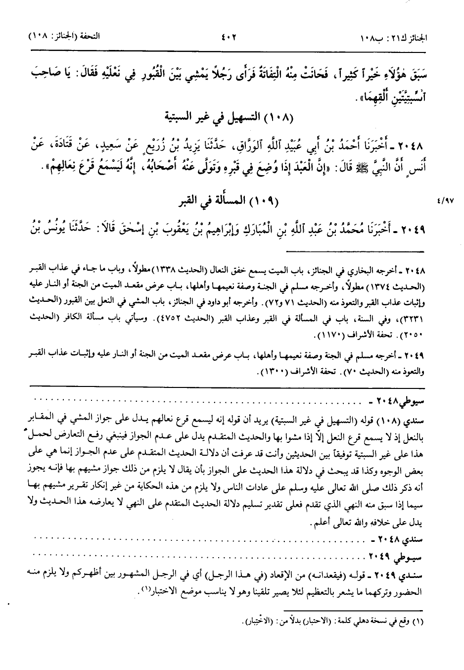 التَّسْهِيلُ فِي غَيْرِ السِّبْتِيَّةِ 2048 - أَخْبَرَنَا أَحْمَدُ بْنُ أَبِي عُبَيْدِ اللَّهِ الْوَرَّاقُ قَالَ حَدَّثَنَا يَزِيدُ بْنُ زُرَيْعٍ عَنْ سَعِيدٍ عَنْ قَتَادَةَ عَنْ أَنَسٍ أَنَّ النَّبِيَّ صَلَّى اللَّهُ عَلَيْهِ وَسَلَّمَ قَالَ إِنَّ الْعَبْدَ إِذَا وُضِعَ فِي قَبْرِهِ وَتَوَلَّى عَنْهُ أَصْحَابُهُ إِنَّهُ لَيَسْمَعُ قَرْعَ نِعَالِهِمْ