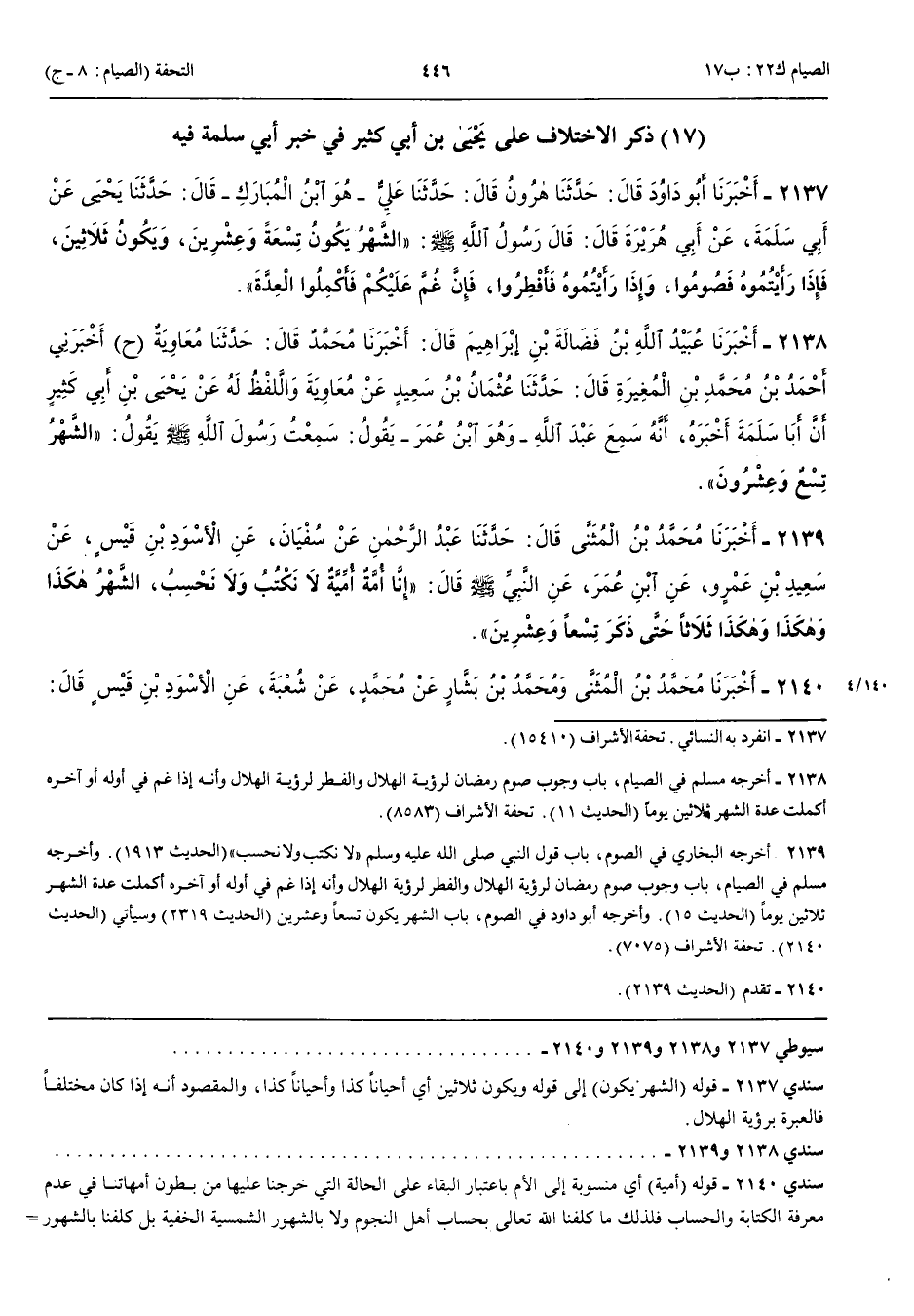 2138 - أَخْبَرَنِي عُبَيْدُ اللَّهِ بْنُ فَضَالَةَ بْنِ إِبْرَاهِيمَ قَالَ أَنْبَأَنَا مُحَمَّدٌ قَالَ حَدَّثَنَا مُعَاوِيَةُ ح و أَخْبَرَنِي أَحْمَدُ بْنُ مُحَمَّدِ بْنِ الْمُغِيرَةِ قَالَ حَدَّثَنَا عُثْمَانُ بْنُ سَعِيدٍ عَنْ مُعَاوِيَةَ وَاللَّفْظُ لَهُ عَنْ يَحْيَى بْنِ أَبِي كَثِيرٍ أَنَّ أَبَا سَلَمَةَ أَخْبَرَهُ أَنَّهُ سَمِعَ عَبْدَ اللَّهِ وَهُوَ ابْنُ عُمَرَ يَقُولُ سَمِعْتُ رَسُولَ اللَّهِ صَلَّى اللَّهُ عَلَيْهِ وَسَلَّمَ يَقُولُ الشَّهْرُ تِسْعٌ وَعِشْرُونَ