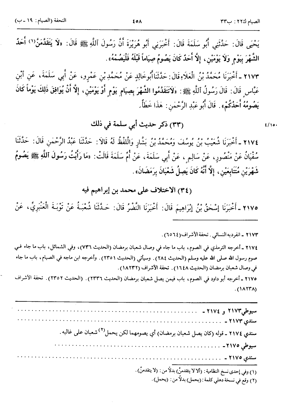 الِاخْتِلَافُ عَلَى مُحَمَّدِ بْنِ إِبْرَاهِيمَ فِيهِ 2175 - أَخْبَرَنَا إِسْحَقُ بْنُ إِبْرَاهِيمَ قَالَ أَنْبَأَنَا النَّضْرُ قَالَ أَنْبَأَنَا شُعْبَةُ عَنْ تَوْبَةَ الْعَنْبَرِيِّ عَنْ مُحَمَّدِ بْنِ إِبْرَاهِيمَ عَنْ أَبِي سَلَمَةَ عَنْ أُمِّ سَلَمَةَ قَالَتْ كَانَ رَسُولُ اللَّهِ صَلَّى اللَّهُ عَلَيْهِ وَسَلَّمَ يَصِلُ شَعْبَانَ بِرَمَضَانَ