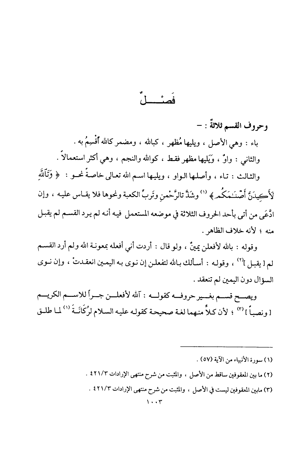 (¬3) ما بين المعقوفين ليست في الأصل، والمثبت من شرح منتهى الإرادات 3/ 421.