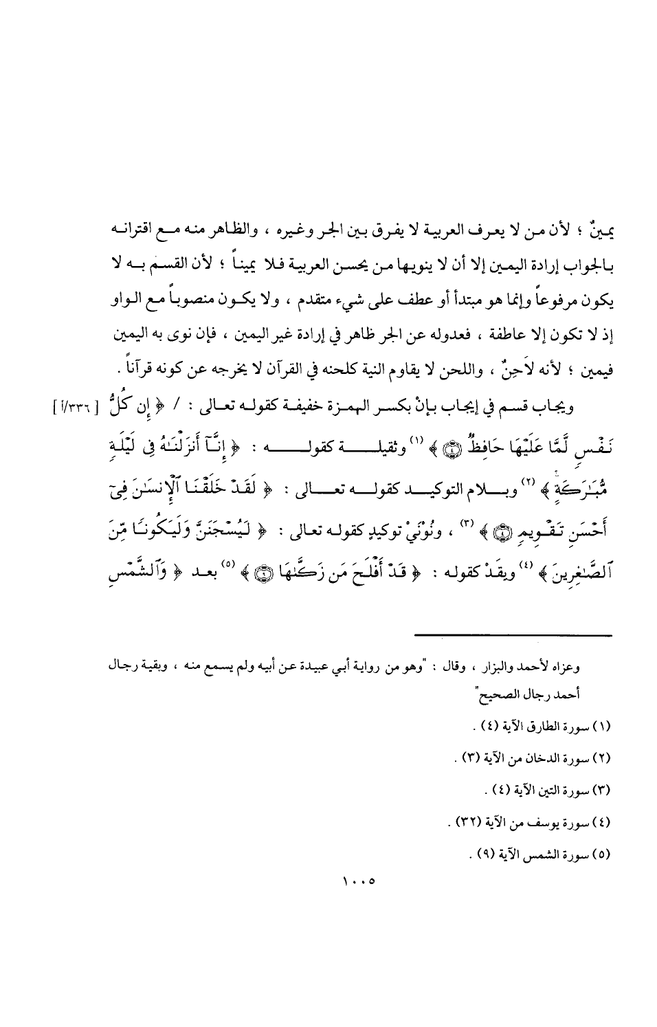 ويجاب قسم في إيجاب بإنْ بكسر الهمزة خفيفة كقوله تعالى: {إِنْ كُلُّ نَفْسٍ لَمَّا عَلَيْهَا حَافِظٌ (4)} (¬1) وثقيلة كقوله: {إِنَّا أَنْزَلْنَاهُ فِي لَيْلَةٍ مُبَارَكَةٍ} (¬2) وبلام التوكيد كقوله تعالى: {لَقَدْ خَلَقْنَا الْإِنْسَانَ فِي أَحْسَنِ تَقْوِيمٍ (4)} (¬3)، ونُؤنَيْ توكيدٍ كقوله تعالى: {لَيُسْجَنَنَّ وَلَيَكُونًا مِنَ الصَّاغِرِينَ} (¬4) ويقَدْ كقوله: {قَدْ أَفْلَحَ مَنْ زَكَّاهَا (9)} (¬5) بعد {والشَّمْسِ