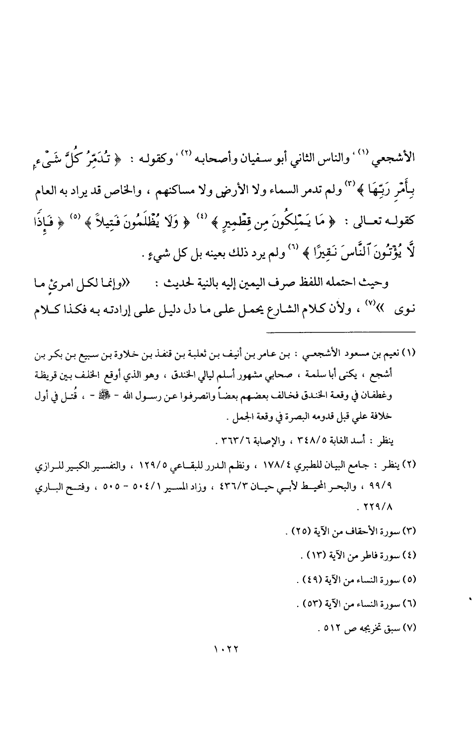 الأشجعي (¬1)، والناس الثاني أبو سفيان وأصحابه (¬2)، وكقوله: {تُدَمِّرُ كُلَّ شَيْءٍ بِأَمْرِ رَبِّهَا} (¬3) ولم تدمر السماء ولا الأرض ولا مساكنهم، والخاص قد يراد به العام كقوله تعالى: {مَا يَمْلِكُونَ مِنْ قِطْمِيرٍ} (¬4) {وَلَا يُظْلَمُونَ فَتِيلًا} (¬5) {فَإِذًا لَا يُؤْتُونَ النَّاسَ نَقِيرًا} (¬6) ولم يرد ذلك بعينه بل كل شيءٍ.