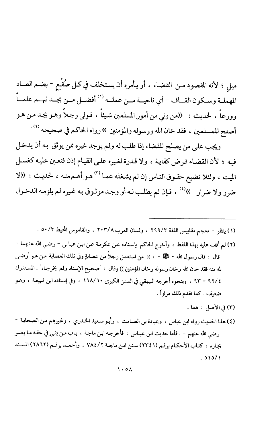 ميلٍ؛ لأنه المقصود من القضاء، أو يأمره أن يستخلف في كل صُقْعٍ -بضم الصاد المهملة وسكون القاف- أي ناحية من عمله (¬1) أفضل من يجد لهم علمًا وورعًا، لحديث: "من ولي من أموو المسلمين شيئًا، فولى وجلًا وهو يجد من هو أصلح للمسلمين، فقد خان اللَّه ورسوله والمؤمنين" وواه الحاكم في صحيحه (¬2).