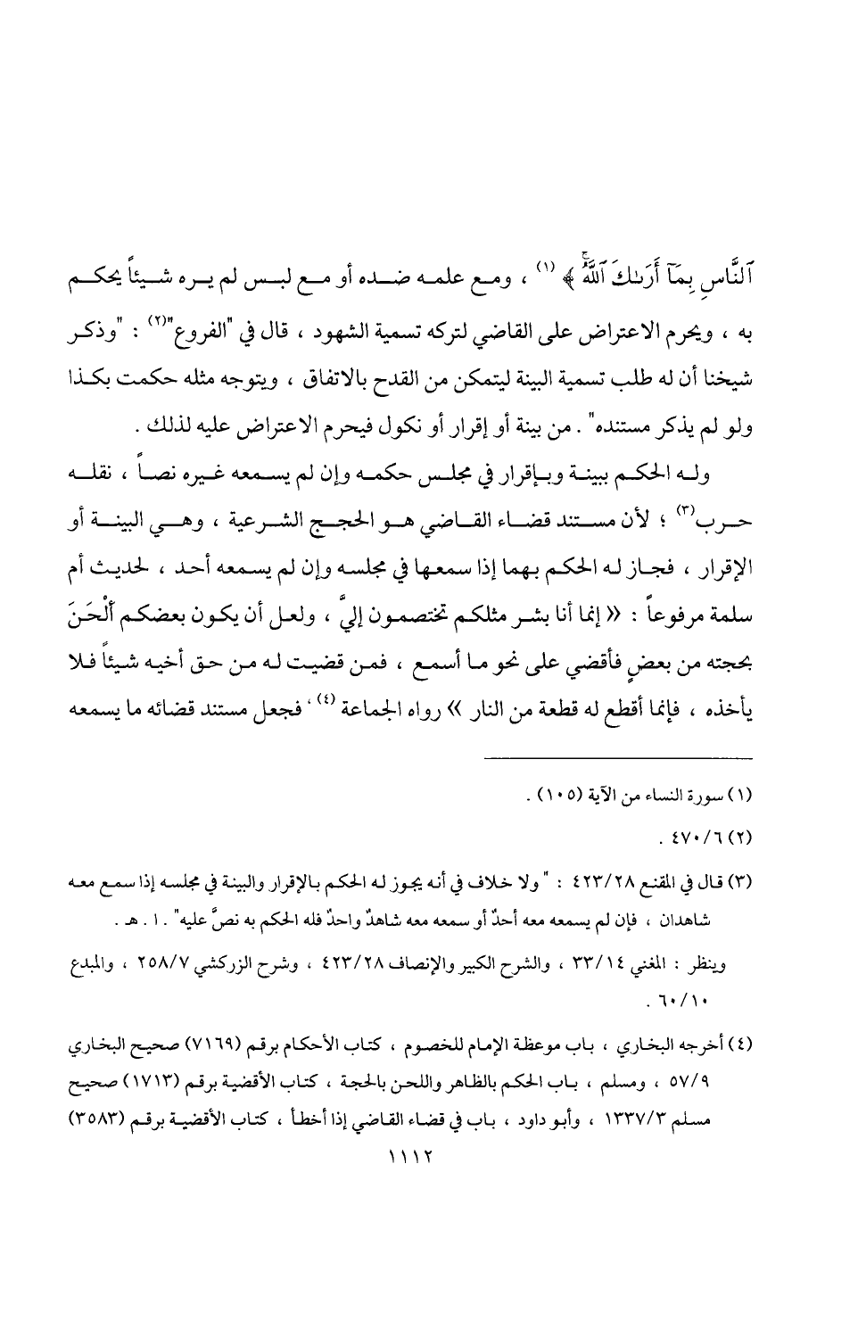 (¬4) أخرجه البخاري، باب موعظة الإمام للخصوم، كتاب الأحكام برقم (7169) صحيح البخاري 9/ 57، ومسلم، باب الحكم بالظاهر واللحن بالحجة، كتاب الأقضية برقم (1713) صحيح مسلم 3/ 337، وأبو داود، باب في قضاء القاضي إذا أخطأ، كتاب الأقضية برقم (3583) =