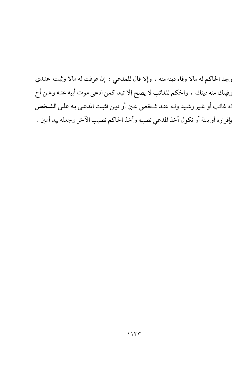 وجد الحاكم له مالا وفاه دينه منه، وإلا قال للمدعي: إن عرفت له مالا وثبت عندي وفيتك منه دينك، والحكم للغائب لا يصح إلا تبعا كمن ادعى موت أبيه عنه وعن أخ له غائب أو غير رشيد وله عند شخص عين أو دين فثبت المدعى به على الشخص بإقراره أو بينة أو نكول أخذ المدعي نصيبه وأخذ الحاكم نصيب الآخر وجعله بيد أمين.