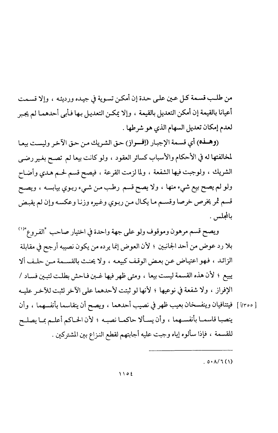 (وهذه) أي قسمة الإجبار (إفراز) حق الشريك من حق الآخر وليست بيعا لمخالفتها له في الأحكام والأسباب كسائر العقود، ولو كانت بيعا لم تصح بغير رضى الشريك، ولوجبت فيها الشفعة، ولما لزمت القرعة، فيصح قسم لحم هدي وأضاح ولو لم يصح بيع شيء منها، ولا يصح قسم رطب من شيء ربوي بيابسه، ويصح قسم ثمر يخرص خرصا وقسم ما يكال من ربوي وغيره وزنا وعكسه وإن لم يقبض بالمجلس.