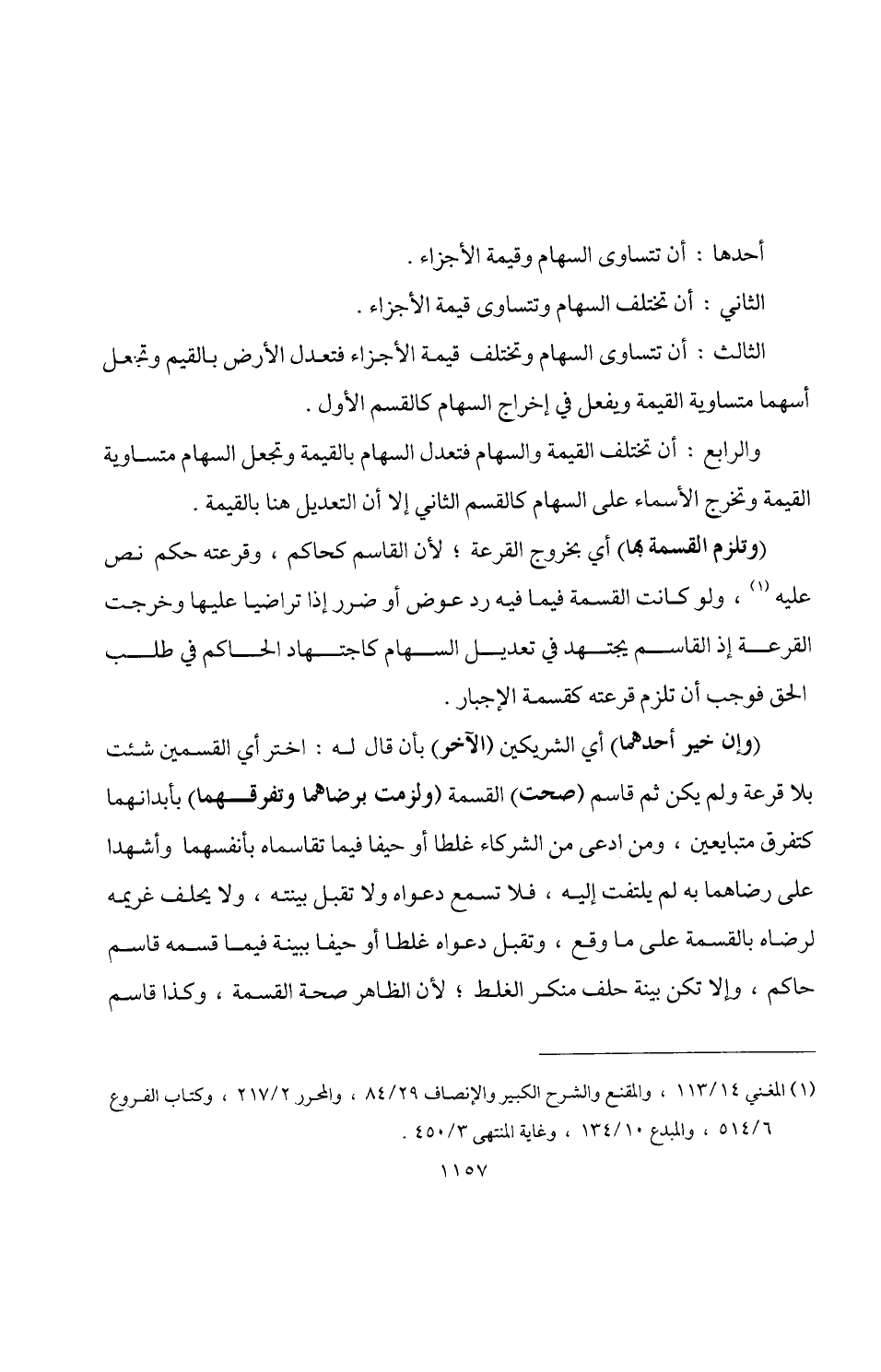 والرابع: أن تختلف القيمة والسهام فتعدل السهام بالقيمة وتجعل السهام متساوية القيمة وتخرج الأسماء على السهام كالقسم الثاني إلا أن التعديل هنا بالقيمة.