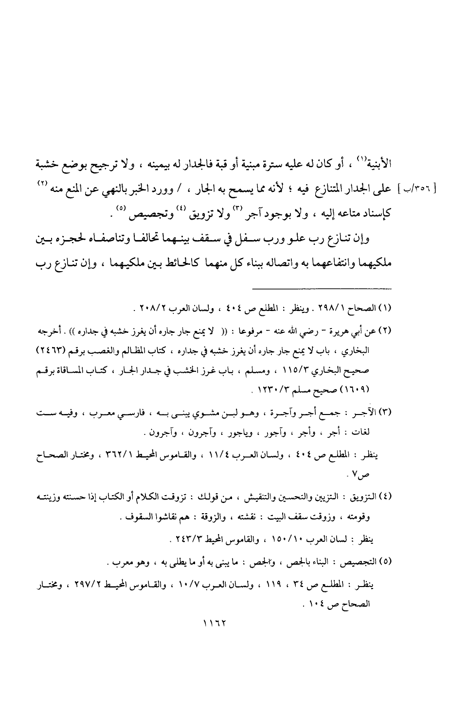 (¬2) عن أبي هريرة -رضي اللَّه عنه- مرفوعا: "لا يمنع جار جاره أن يغرز خشبه في جداره". أخرجه البخاري، باب لا يمنع جار جاره أن يغرز خشبه في جداره، كتاب المظالم والغصب برقم (2463) صحيح البخاري 3/ 115، ومسلم، باب غرز الخشب في جدار الجار، كتاب المساقاة برقم (1609) صحيح مسلم 3/ 1230.