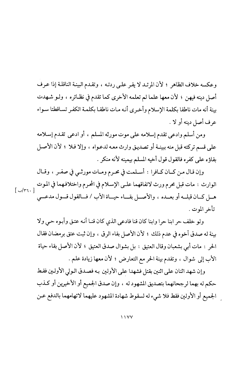 ومن أسلم وادعى تقدم إسلامه على موت مورثه المسلم، أو ادعى تقدم إسلامه على قسم تركته قبل منه ببينة أو تصديق وارث معه لدعواه، وإلا فلا؛ لأن الأصل بقاؤه على كفره فالقول قول أخيه المسلم بيمينه لأنه منكر.