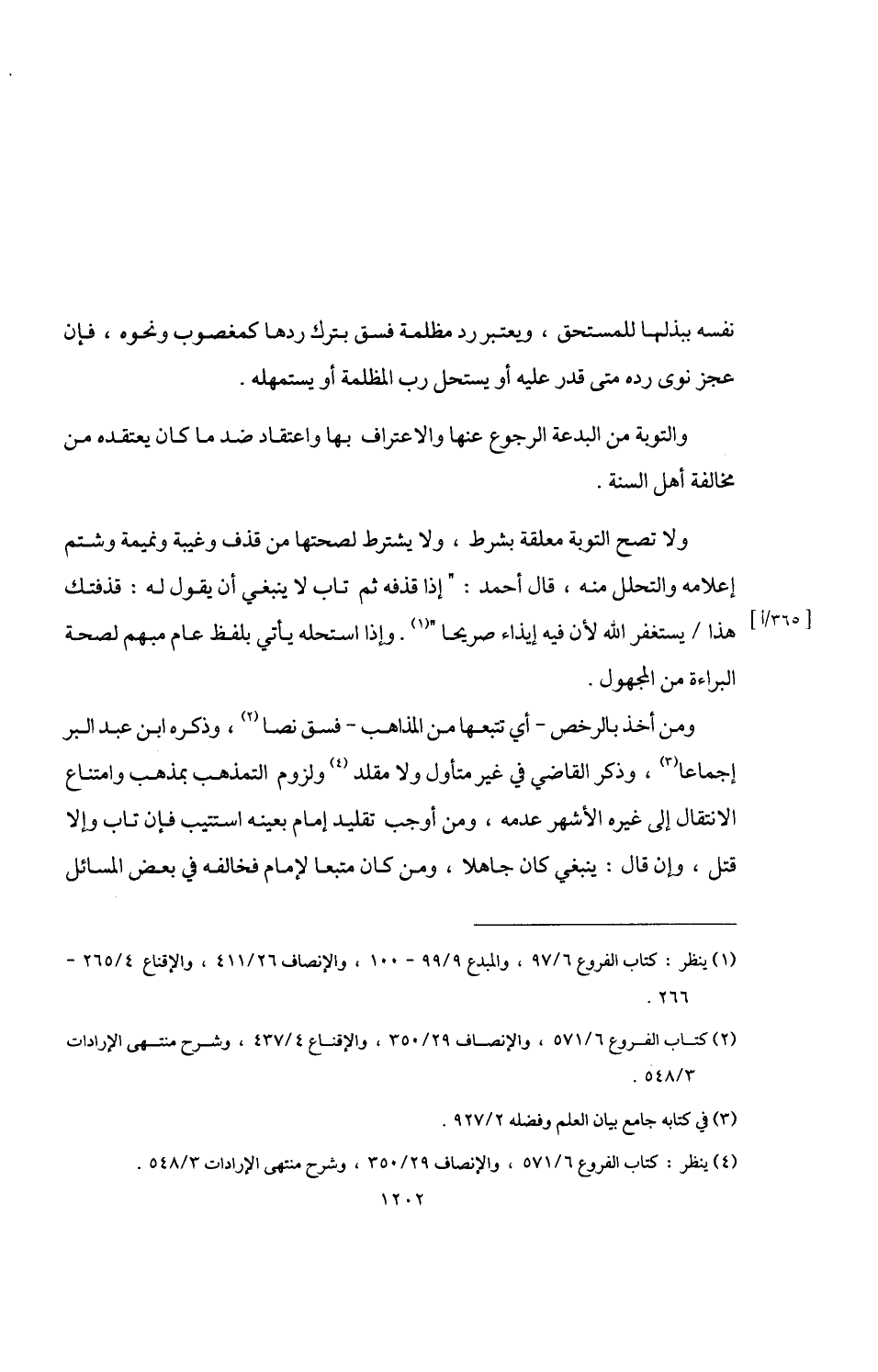 (¬4) ينظر: كتاب الفروع 6/ 571، والإنصاف 29/ 350، وشرح منتهى الإرادات 3/ 548.