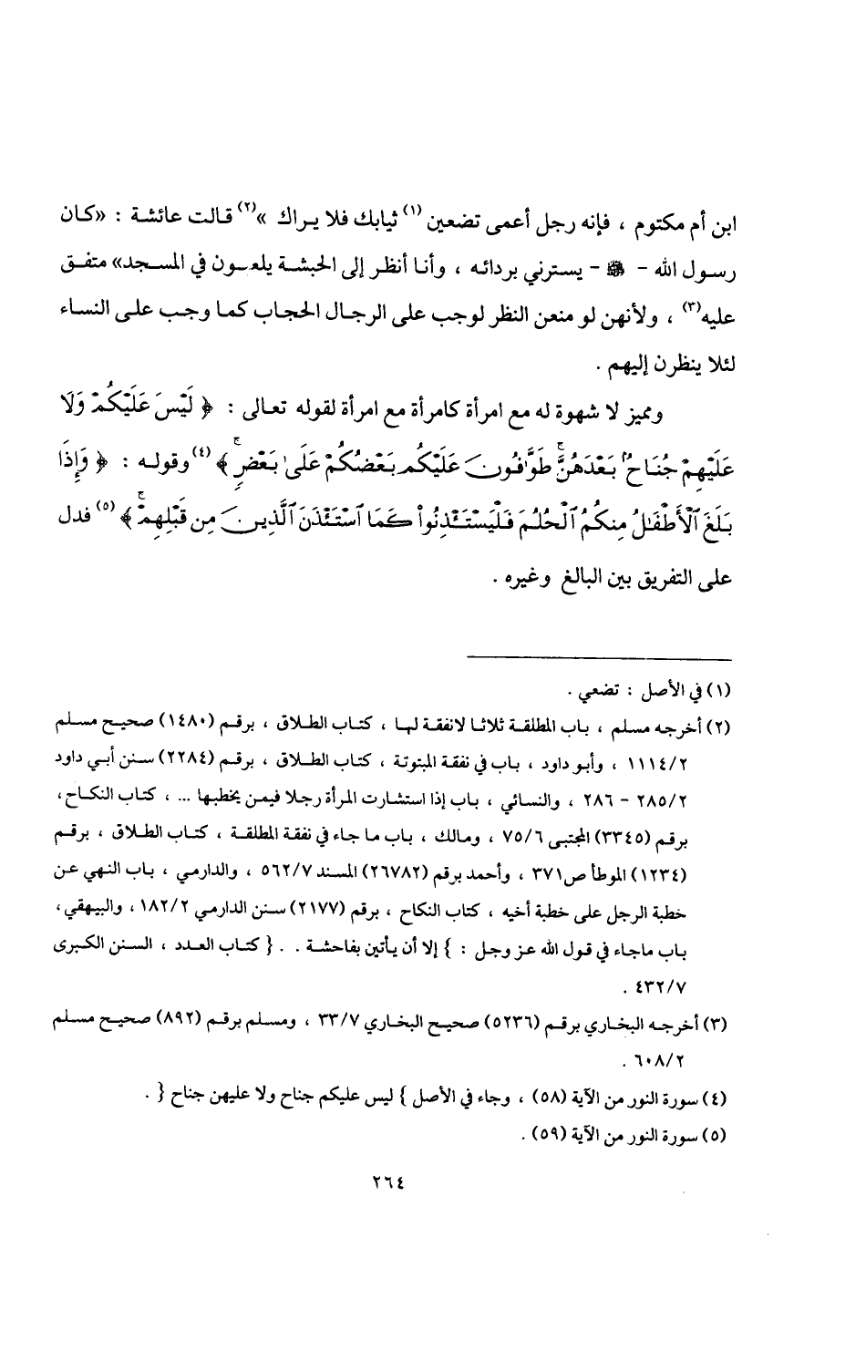 (¬4) سورة النور من الآية (58)، وجاء في الأصل {ليس عليكم جناح ولا عليهن جناح}.