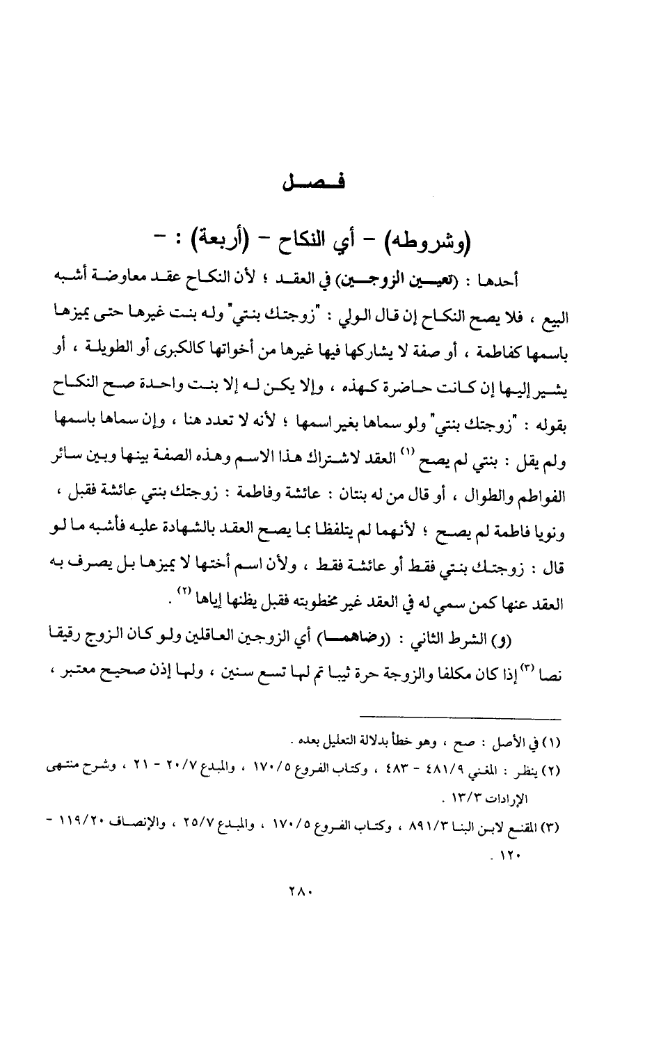 فصل (وشروطه) -أي النكاح- (أربعة): -