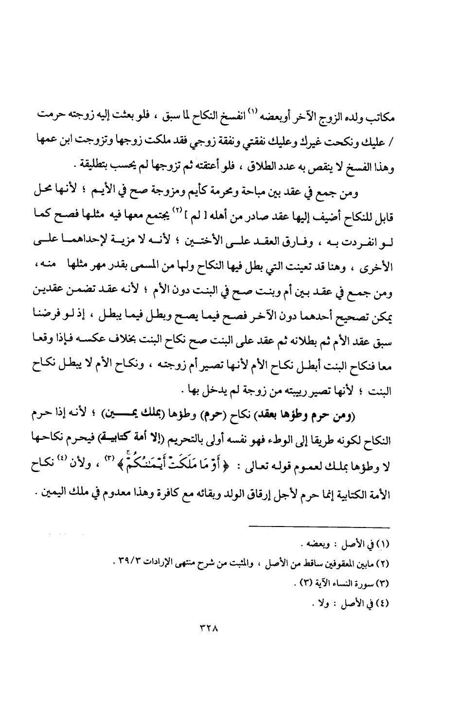 (¬2) ما بين المعقوفين ساقط من الأصل، والمثبت من شرح منتهى الإرادات 3/ 39.