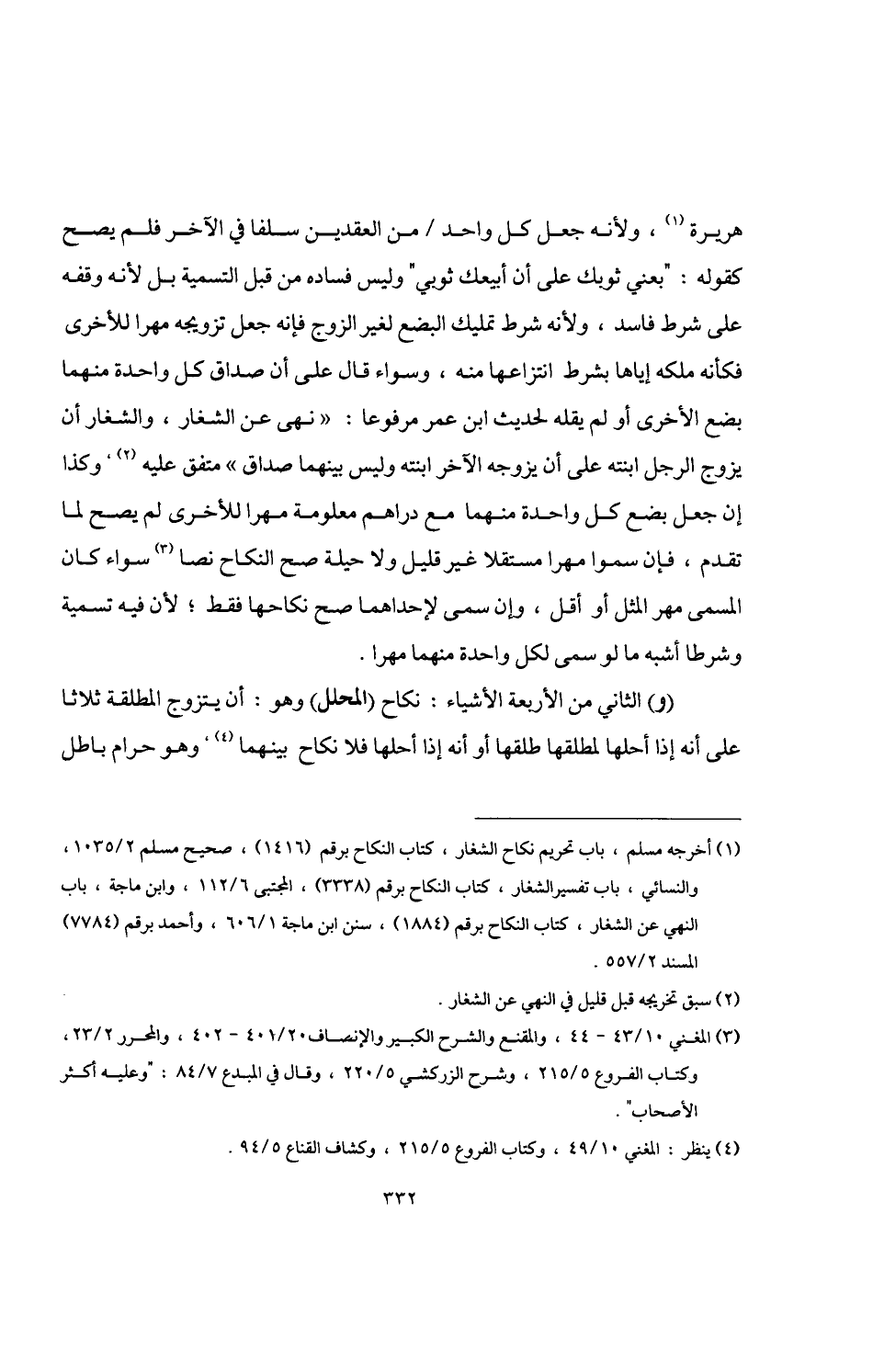 (¬1) أخرجه مسلم، باب تحريم نكاح الشغار، كتاب النكاح برقم (1416)، صحيح مسلم 2/ 1035، والنسائي، باب تفسير الشغار، كتاب النكاح برقم (3338)، المجتبى 6/ 112، وابن ماجة، باب النهي عن الشغار، كتاب النكاح برقم (1884)، سنن ابن ماجة 1/ 606، وأحمد برقم (7784) المسند 2/ 557.