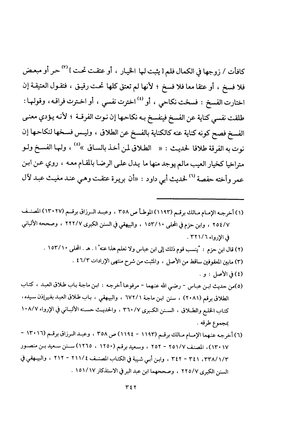 (¬5) من حديث ابن عباس -رضي اللَّه عنهما- مرفوعا أخرجه: ابن ماجة باب طلاق العبد، كتاب الطلاق برقم (2081)، سنن ابن ماجة 1/ 672، والبيهقي، باب طلاق العبد بغير إذن سيده، كتاب الخلع والطلاق، السنن الكبرى 7/ 360، والحديث حسنه الألباني في الإرواء 7/ 108 بمجموع طرقه.