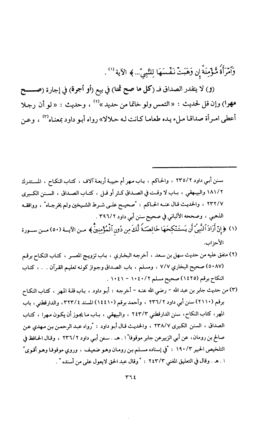 (¬3) من حديث جابر بن عبد اللَّه -رضي اللَّه عنه- أخرجه: أبو داود، باب قلة المهر، كتاب النكاح برقم (2110) سنن أبي داود 2/ 236، وأحمد برقم (14410) المسند 4/ 323، والدارقطني، باب المهر، كتاب النكاح، سنن الدارقطني 3/ 243، والبيهقي، باب ما يجوز أن يكون مهرا، كتاب الصداق، السنن الكبرى 7/ 238، والحديث قال أبو داود: "رواه عبد الرحمن بن مهدي عن صالح بن رومان، عن أبي الزبير عن جابر موقوفا" ا. هـ. سنن أبي داود 2/ 236، وقال الحافظ في التلخيص الحبير 3/ 190: "في إسناده مسلم ين رومان وهو ضعيف، وروي موقوفا وهو أقوى" ا. هـ. وقال في التعليق المغني 3/ 243: "وقال عبد الحق لا يعول على من أسنده".