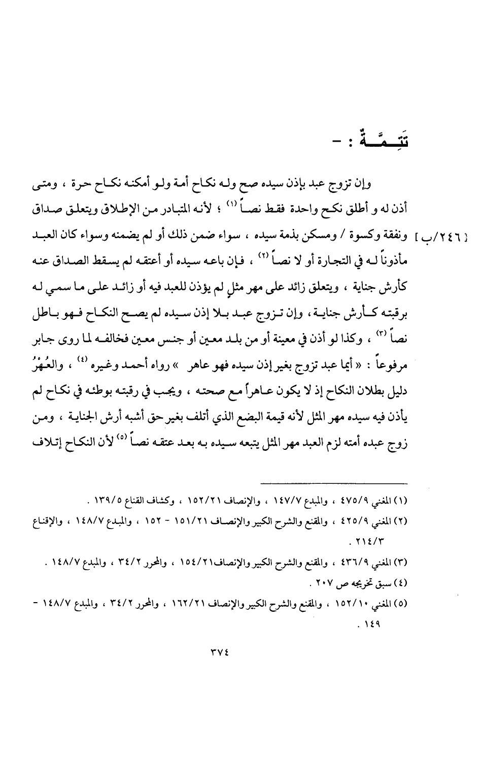 (¬5) المغني 10/ 152، والمقنع والشرح الكبير والإنصاف 21/ 162، والمحرر 2/ 34، والمبدع 7/ 148 - 149.