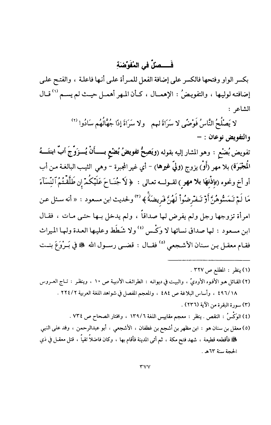 فَصْلٌ فى المُفَوّضَةِ