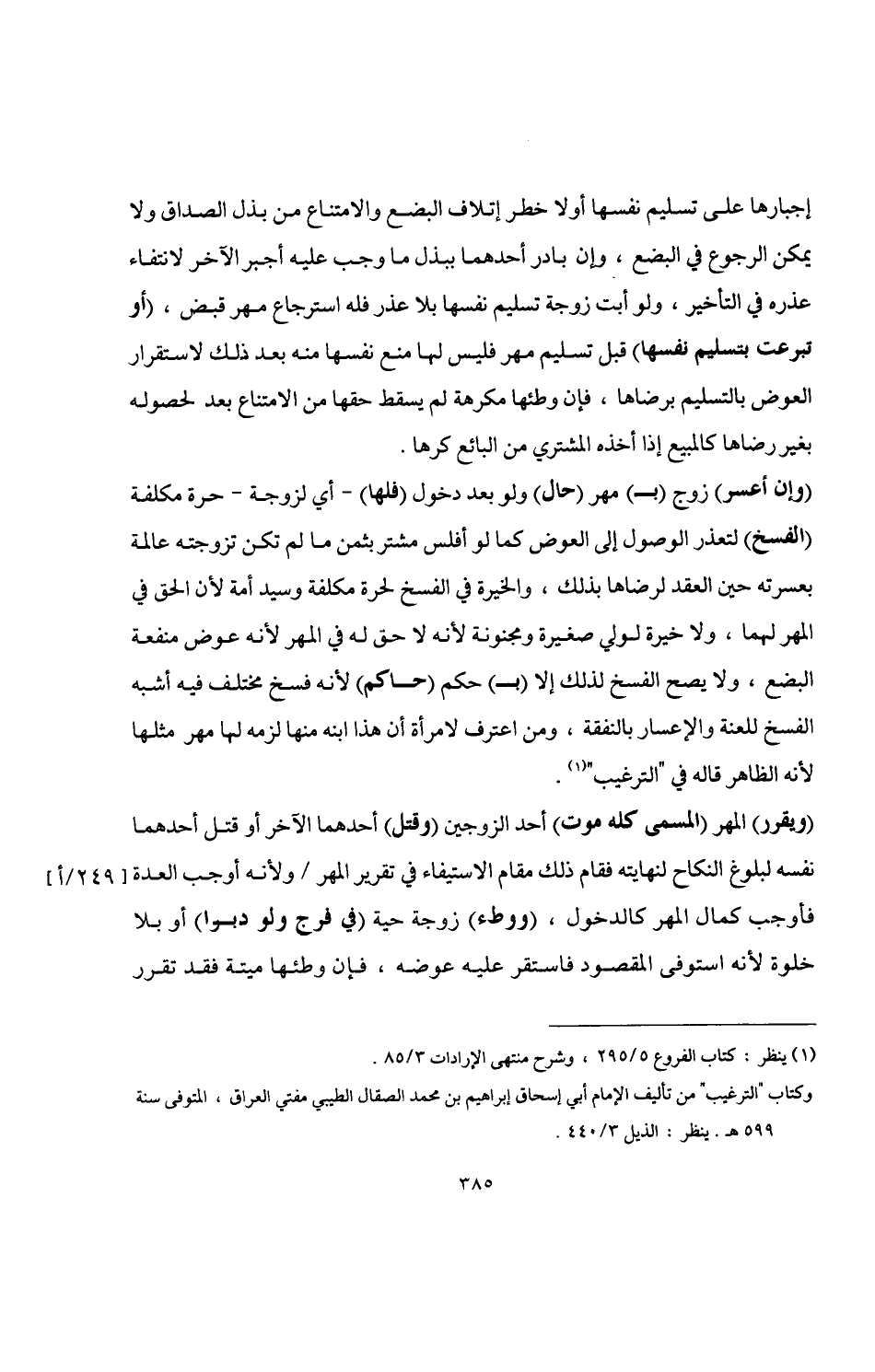 (¬1) ينظر: كتاب الفروع 5/ 295، وشرح منتهى الإرادات 3/ 85.