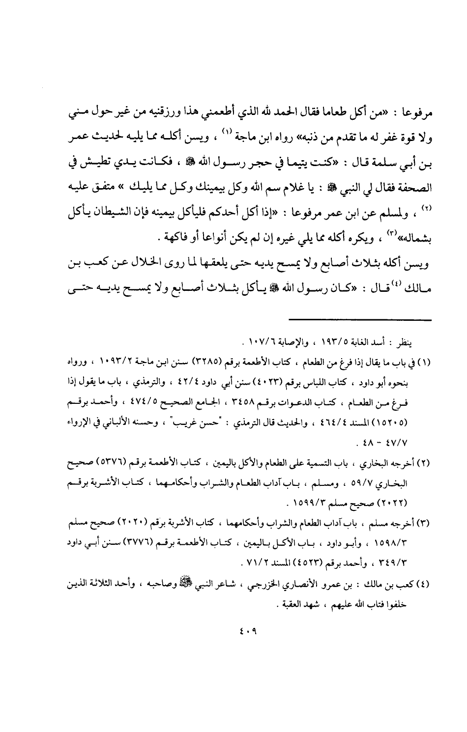 (¬3) أخرجه مسلم، باب آداب الطعام والشراب وأحكامهما، كتاب الأشربة برقم (2020) صحيح مسلم 3/ 1598، وأبو داود، باب الأكل باليمين، كتاب الأطعمة برقم (3776) سنن أبي داود 3/ 349، وأحمد برقم (4523) المسند 2/ 71.
