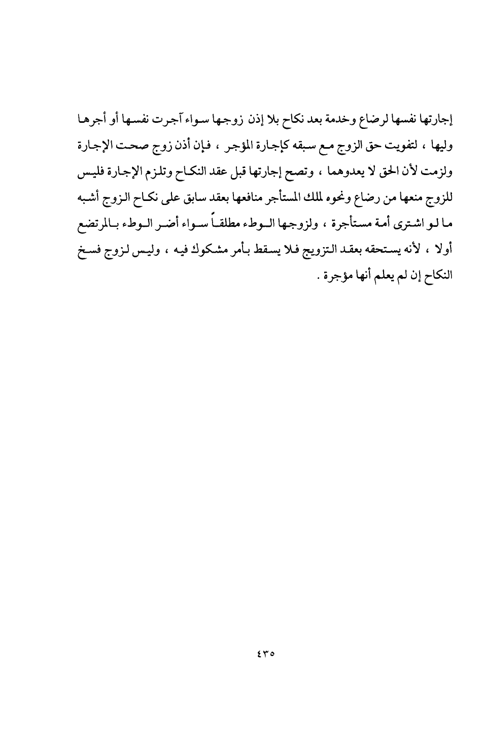 إجارتها نفسها لرضاع وخدمة بعد نكاح بلا إذن زوجها سواء آجرت نفسها أو أجرها وليها، لتفويت حق الزوج مع سبقه كإجارة المؤجر، فإن أذن زوج صحت الإجارة ولزمت لأن الحق لا يعدوهما، وتصح إجارتها قبل عقد النكاح وتلزم الإجارة فليس للزوج منعها من رضاع ونحوه لملك المستأجر منافعها بعقد سابق على نكاح الزوج أشبه ما لو اشترى أمة مستاجرة، ولزوجها الوطء مطلقًا سواء أضر الوطء بالمرتضع أولا، لأنه يستحقه بعقد التزويج فلا يسقط بأمر مشكوك فيه، وليس لزوج فسخ النكاح إن لم يعلم أنها مؤجرة.