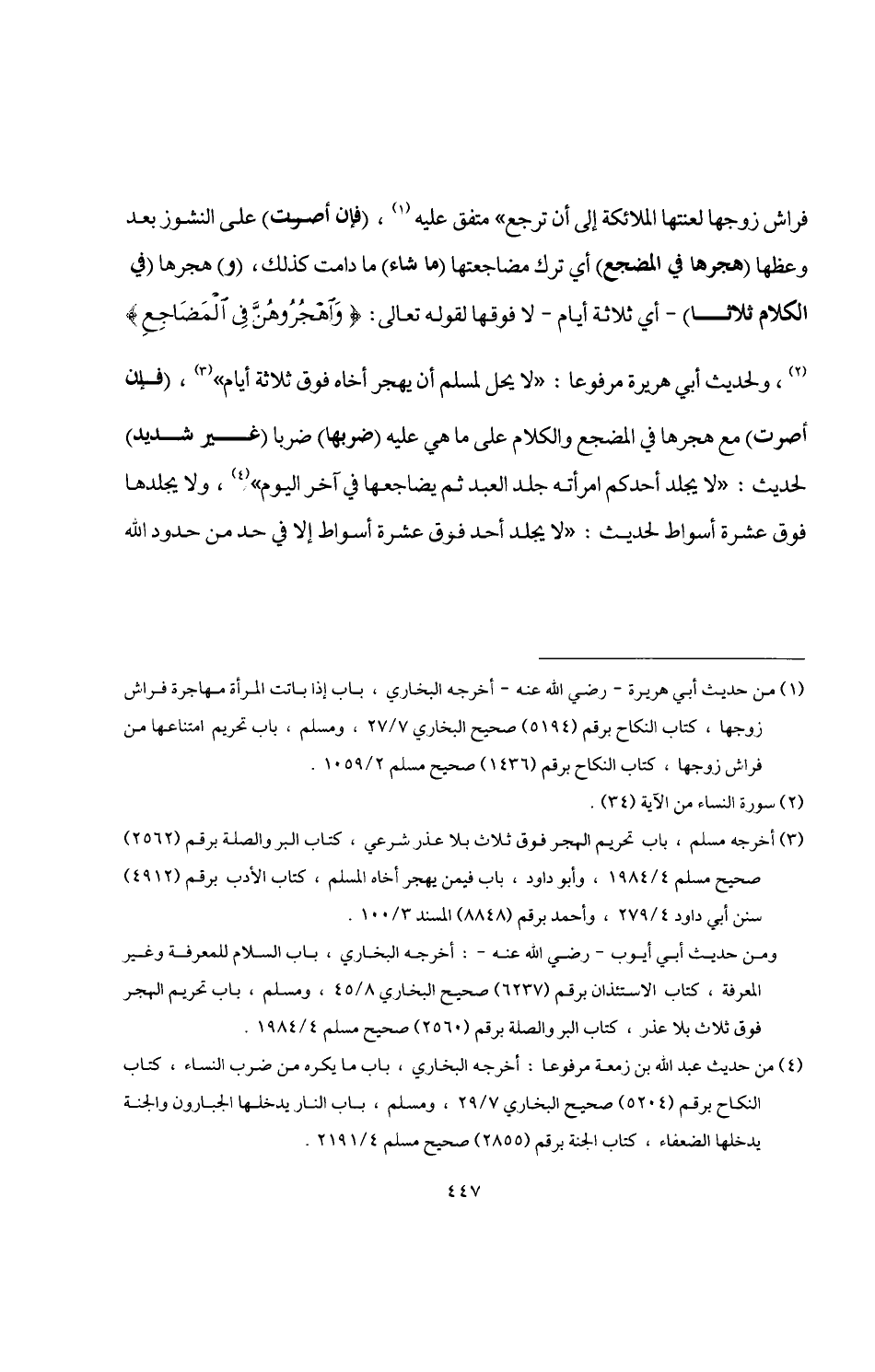 (¬3) أخرجه مسلم، باب تحريم الهجر فوق ثلاث بلا عذر شرعي، كتاب البر والصلة برقم (2562) صحيح مسلم 4/ 1984، وأبو داود، باب فيمن يهجر أخاه المسلم، كتاب الأدب برقم (4912) سنن أبي داود 4/ 279، وأحمد برقم (8848) المسند 3/ 100.