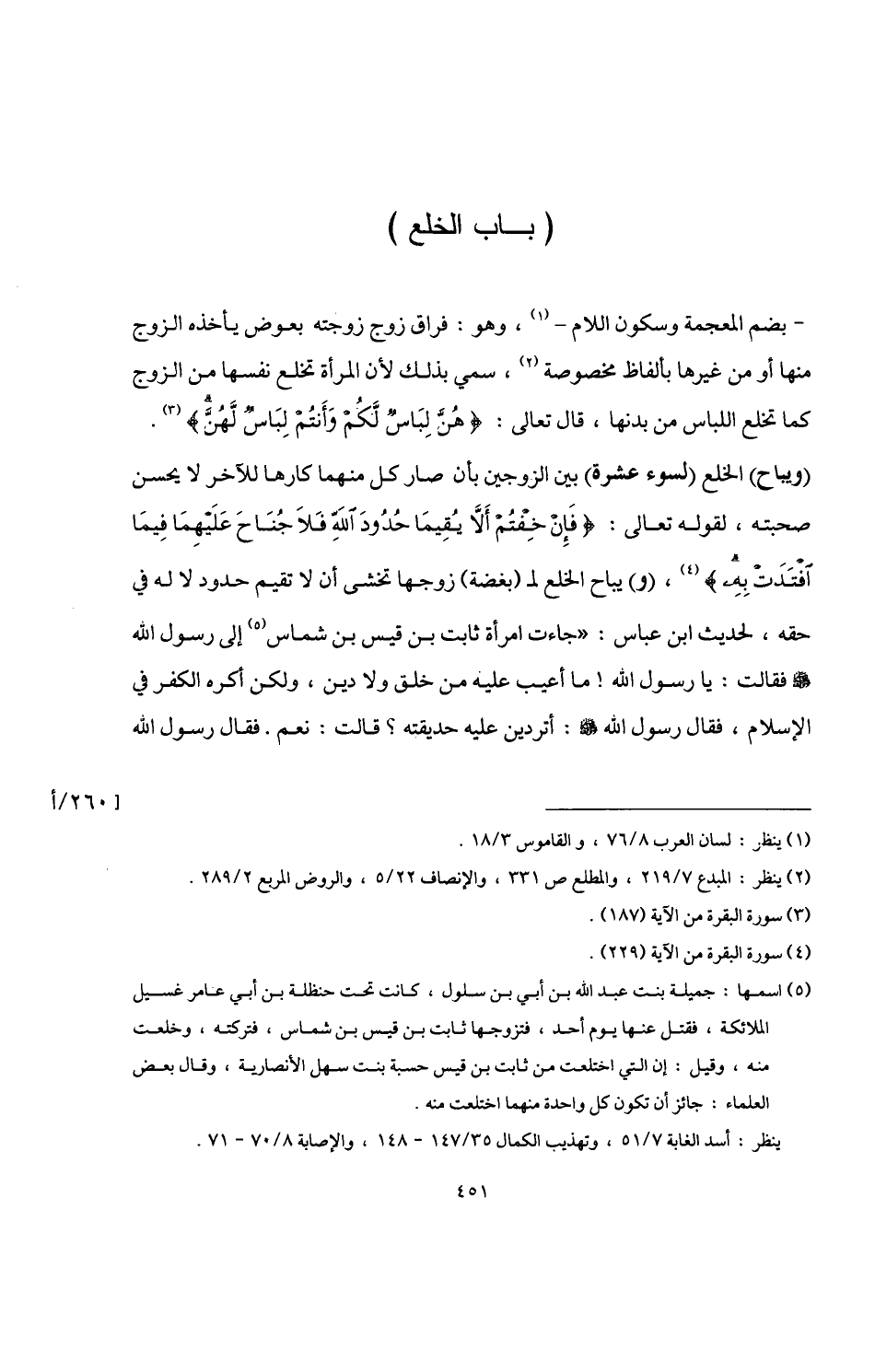 (¬5) اسمها: جميلة بنت عبد اللَّه بن أبي بن سلول، كانت تحت حنظلة بن أبي عامر غسيل الملائكة، ففتل عنها يوم أحد، فتزوجها ثابت بن قيس بن شماس، فتركته، وخلعت منه، وقيل: إن التي اختلعت من ثابت بن قيس حسبة بنت سهل الأنصارية، وقال بعض العلماء: جائز أن تكون كل واحدة منهما اختلعت منه.