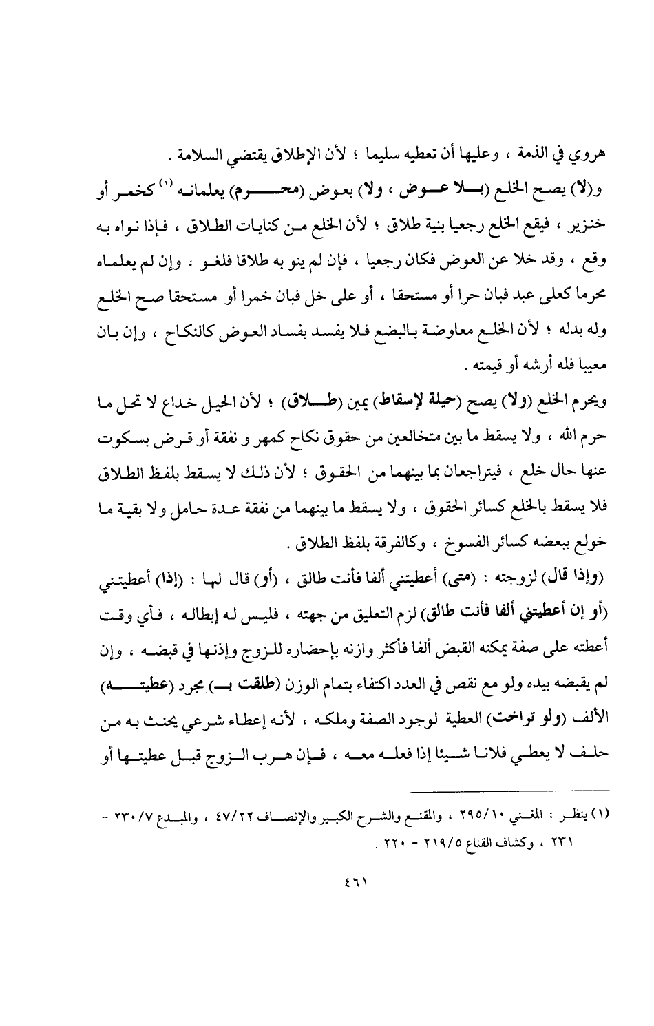 (¬1) ينظر: المغني 10/ 295، والمقنع والشرح الكبير والإنصاف 22/ 47، والمبدع 7/ 230 - 231، وكشاف القناع 5/ 219 - 220.