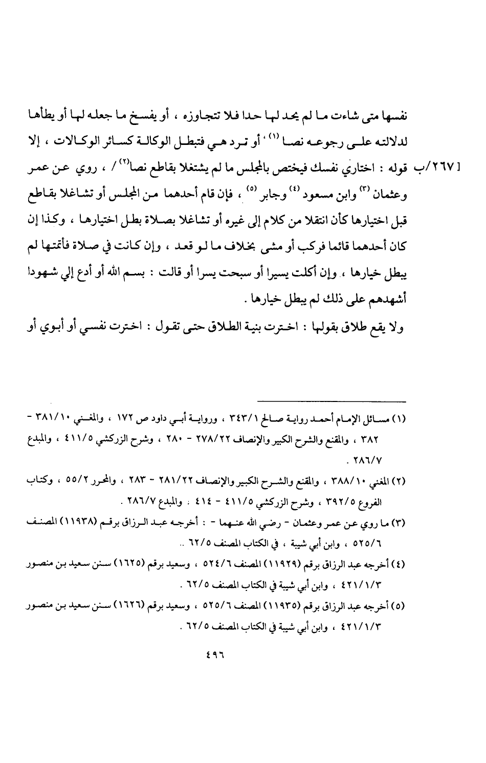 (¬1) مسائل الإمام أحمد رواية صالح 1/ 343، ورواية أبي داود ص 172، والمغني 10/ 381 - 382، والمقنع والشرح الكبير والإنصاف 22/ 278 - 280، وشرح الزركشي 5/ 411، والمبدع 7/ 286.