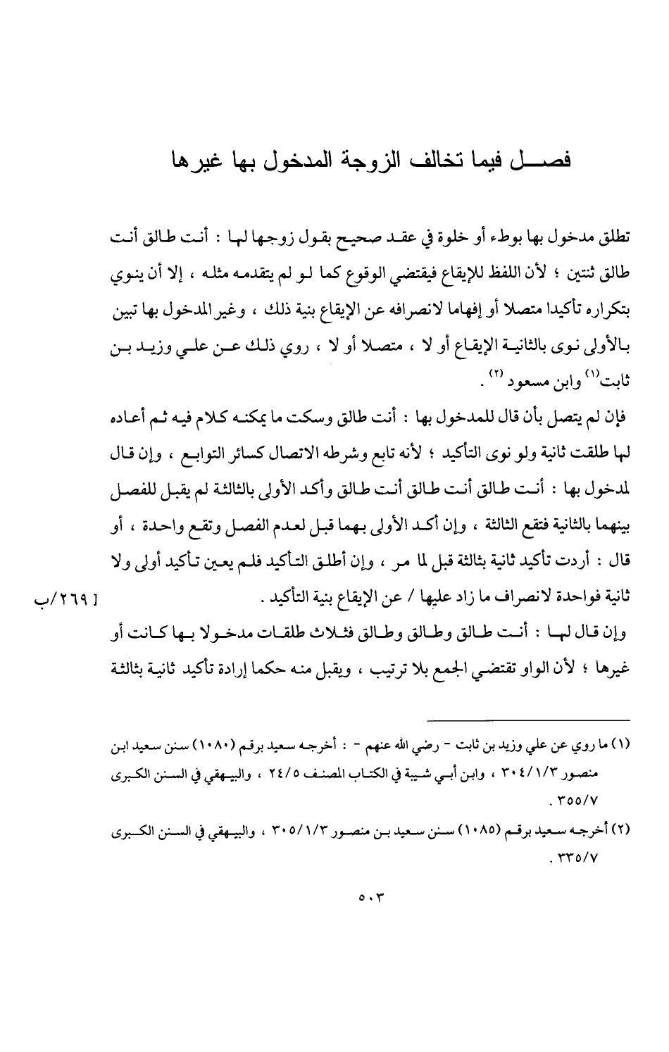 (¬1) ما روي عن علي وزيد بن ثابت -رضي اللَّه عنهم-: أخرجه سعيد برقم (1080) سنن سعيد ابن منصور 3/ 1/ 304، وابن أبي شيبة في الكتاب المصنف 5/ 24، والبيهقي في السنن الكبرى 7/ 355.