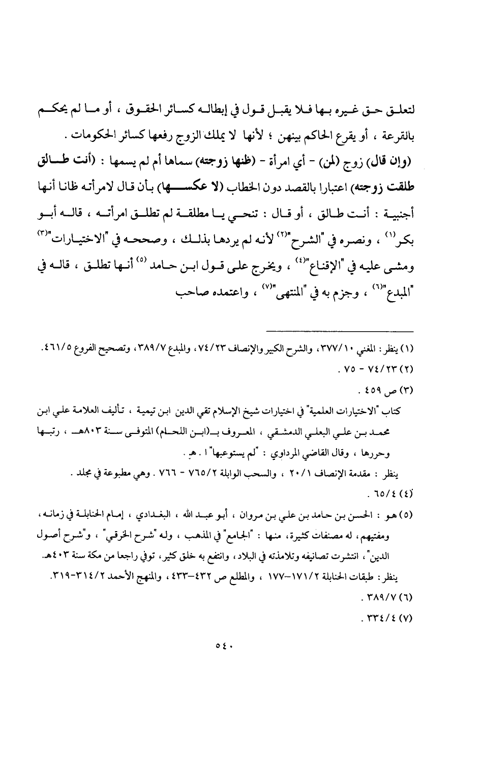 (¬1) ينظر: المغني 10/ 377، والشرح الكبير والإنصاف 23/ 74، والمبدع 7/ 389، وتصحيح الفروع 5/ 461.