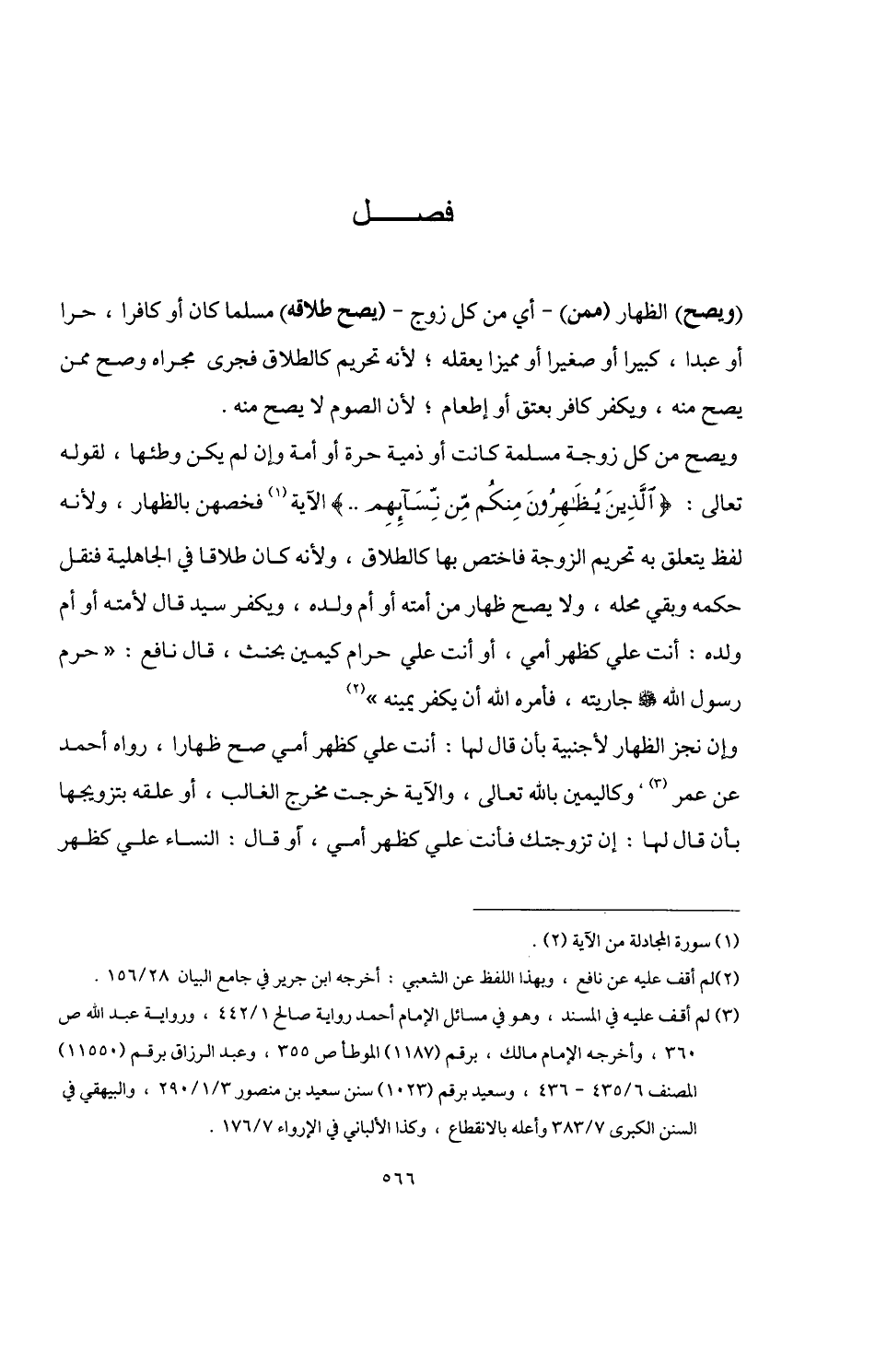 ويصح من كل زوجة مسلمة كانت أو ذمية حرة أو أمة وإن لم يكن وطئها، لقوله تعالى: {الَّذِينَ يُظَاهِرُونَ مِنْكُمْ مِنْ نِسَائِهِمْ. .} الآية (¬1) فخصهن بالظهار، ولأنه لفظ يتعلق به تحريم الزوجة فاختص بها كالطلاق، ولأنه كان طلاقا في الجاهلية فنقل حكمه وبقي محله، ولا يصح ظهار من أمته أو أم ولده، ويكفر سيد قال لأمته أو أم ولده: أنت علي كظهر أمي، أو أنت علي حرام كيمين بحنث، قال نافع: "حرم رسول اللَّه -صلى اللَّه عليه وسلم- جاريته، فأمره اللَّه أن يكفر يمينه" (¬2).