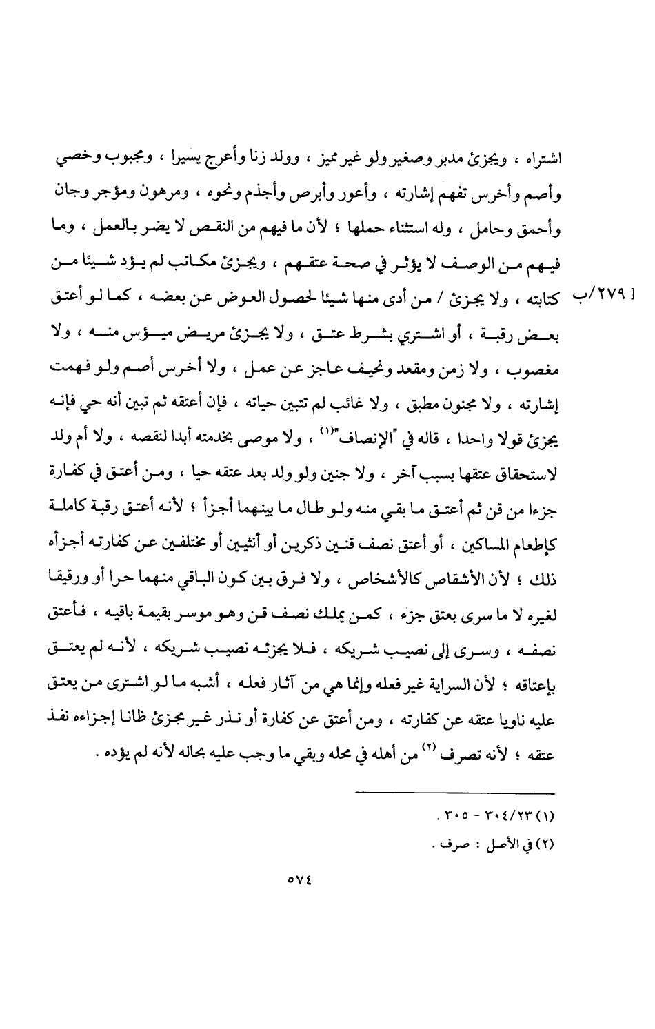 اشتراه، ويجزئ مدبر وصغير ولو غير مميز، وولد زنا وأعرج يسيرا، ومجبوب وخصي وأصم وأخرس تفهم إشارته، وأعور وأبرص وأجذم ونحوه، ومرهون ومؤجر وجان وأحمق وحامل، وله استثناء حملها؛ لأن ما فيهم من النقص لا يضر بالعمل، وما فيهم من الوصف لا يؤثر في صحة عتقهم، ويجزئ مكاتب لم يؤد شيئا من كتابته، ولا يجزئ من أدى منها شيئا لحصول العوض عن بعضه، كما لو أعتق بعض رقبة، أو اشتري بشرط عتق، ولا يجزئ مريض ميؤس منه، ولا مغصوب، ولا زمن ومقعد ونحيف عاجز عن عمل، ولا أخرس أصم ولو فهمت إشارته، ولا مجنون مطبق، ولا غائب لم تتبين حياته، فإن أعتقه ثم تبين أنه حي فإنه يجزئ قولا واحدا، قاله في "الإنصاف" (¬1)، ولا موصى بخدمته أبدا لنقصه، ولا أم ولد لاستحقاق عتقها بسبب آخر، ولا جنين ولو ولد بعد عتقه حيا، ومن أعتق في كفارة جزءا من قن ثم أعتق ما بقي منه ولو طال ما بينهما أجزأ؛ لأنه أعتق رقبة كاملة كإطعام المساكين، أو أعتق نصف قنين ذكرين أو أنثيين أو مختلفين عن كفارته أجزأه ذلك؛ لأن الأشقاص كالأشخاص، ولا فرق بين كون الباقي منهما حرا أو ورقيقا لغيره لا ما سرى بعتق جزء، كمن يملك نصف قن وهو موسر بقيمة باقيه، فأعتق نصفه، وسرى إلى نصيب شريكه، فلا يجزئه نصيب شريكه، لأنه لم يعتق بإعتاقه؛ لأن السراية غير فعله وإنما هي من آثار فعله، أشبه ما لو اشترى من يعتق عليه ناويا عتقه عن كفارته، ومن أعتق عن كفارة أو نذر غير مجزئ ظانا إجزاءه نفذ عتقه؛ لأنه تصرف (¬2) من أهله في محله وبقي ما وجب عليه بحاله لأنه لم يؤده.