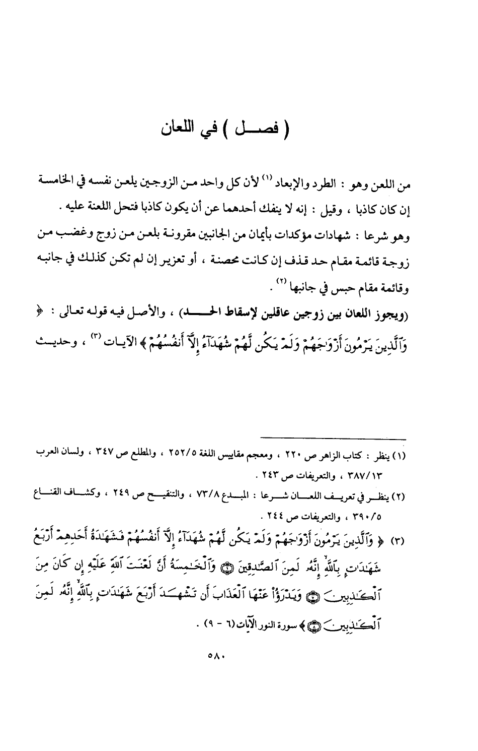 (¬2) ينظر في تعريف اللعان شرعا: المبدع 8/ 73، والتنقيح ص 249، وكشاف القناع 5/ 390، والتعريفات ص 244.