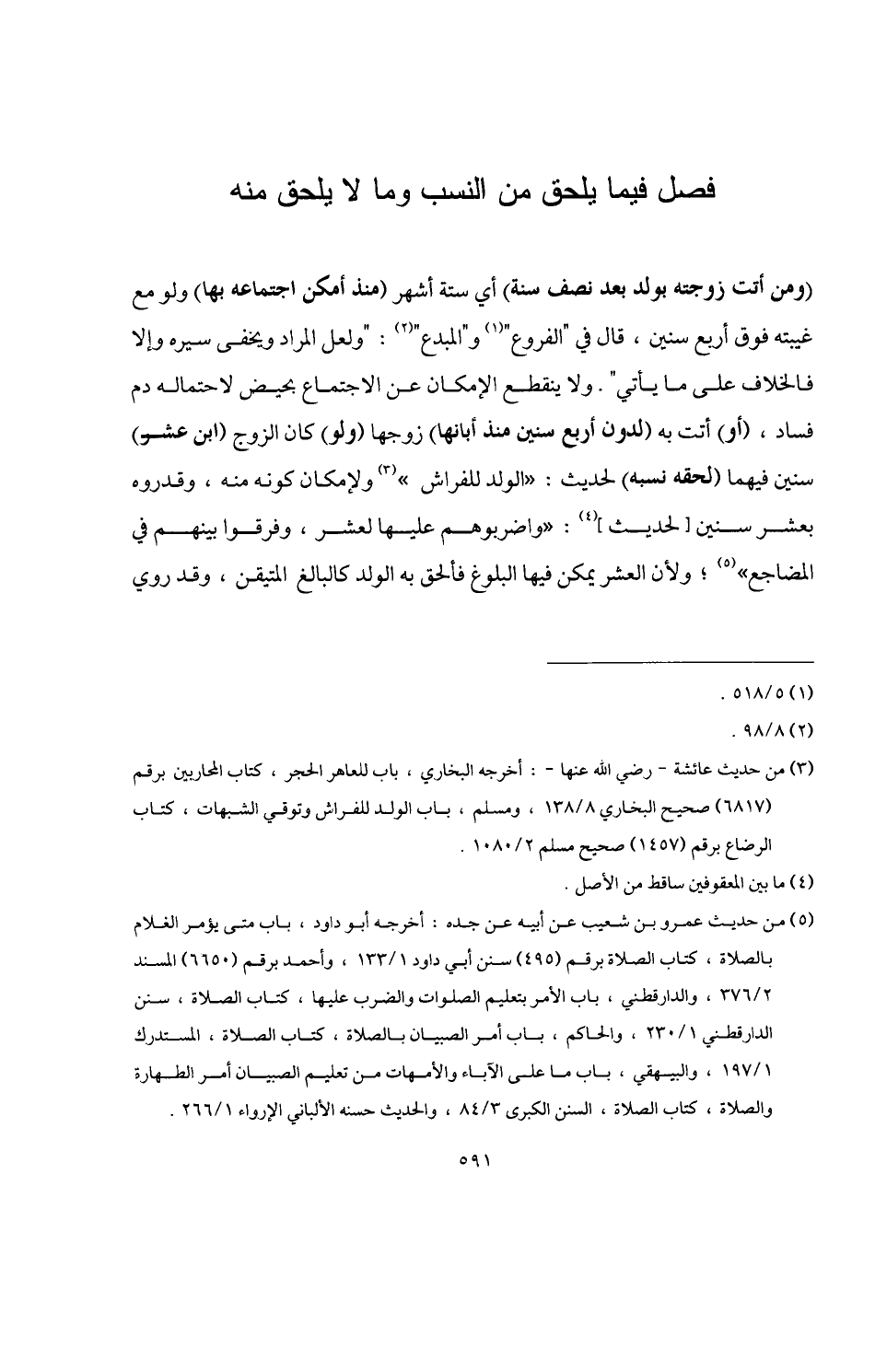 فصل فيما يلحق من النسب وما لا يلحق منه