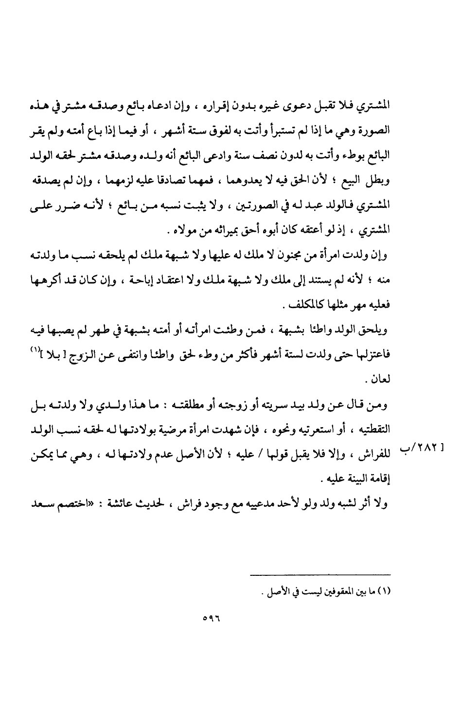 المشتري فلا تقبل دعوى غيره بدون إقراره، وإن ادعاه بائع وصدقه مشتر في هذه الصورة وهي ما إذا لم تستبرأ وأتت به لفوق ستة أشهر، أو فيما إذا باع أمته ولم يقر البائع بوطء وأتت به لدون نصف سنة وادعى البائع أنه ولده وصدقه مشتر لحقه الولد وبطل البيع؛ لأنا الحق فيه لا يعدوهما، فمهما تصادقا عليه لزمهما، وإن لم يصدقه المشتري فالولد عبد له في الصورتين، ولا يثبت نسبه من بائع؛ لأنه ضرر على المشتري، إذ لو أعتقه كان أبوه أحق بميراثه من مولاه.