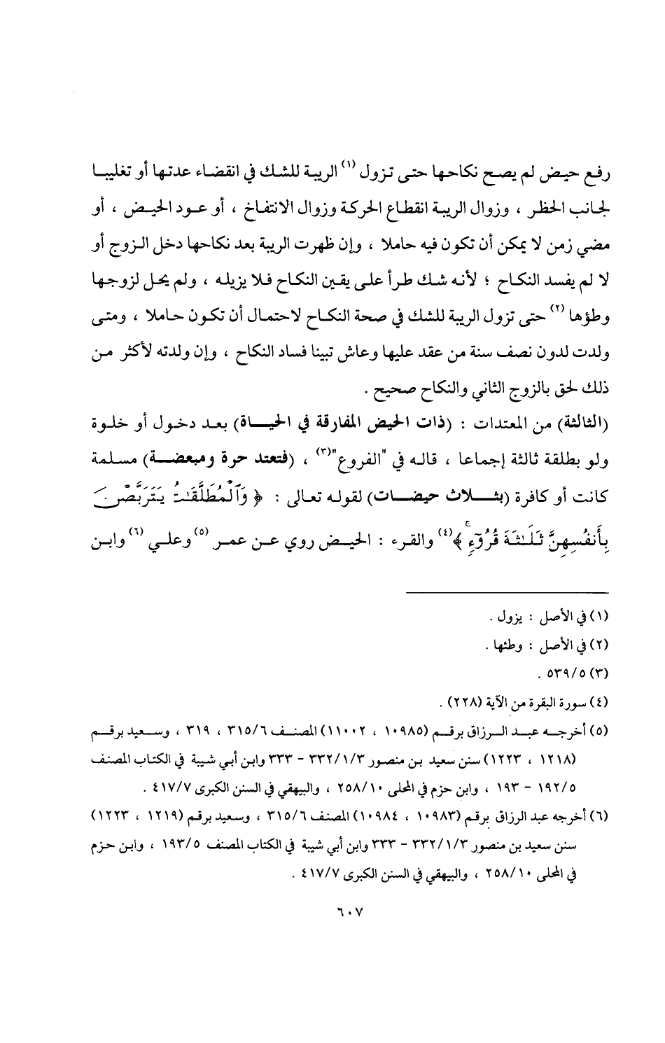 (¬5) أخرجه عبد الرزاق برقم (10985، 11002) المصنف 6/ 315، 319، وسعيد برقم (1218، 1223) سنن سعيد بن منصور 3/ 1/ 332 - 333 وابن أبي شيبة في الكتاب المصنف 5/ 192 - 193، وابن حزم في المحلى 1/ 2580، والبيهقي في السنن الكبرى 7/ 417.