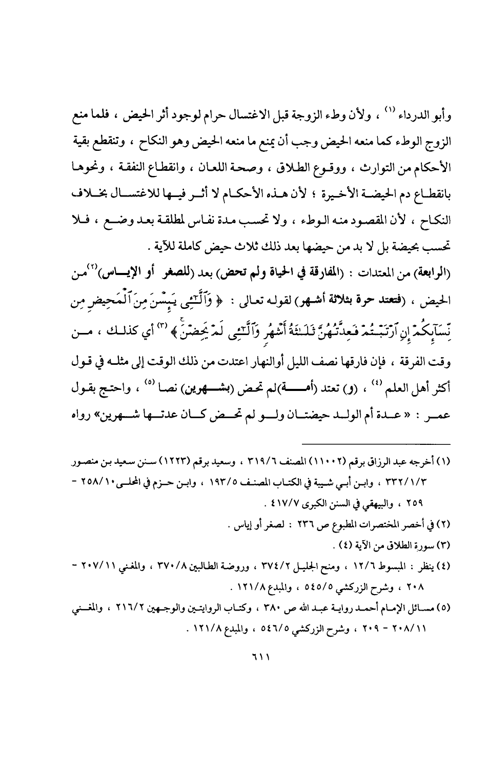 (¬4) ينظر: المبسوط 6/ 12، ومنح الجليل 2/ 374، وروضة الطالبين 8/ 370، والمغني 11/ 207 - 208، وشرح الزركشي 5/ 545، والمبدع 8/ 121.