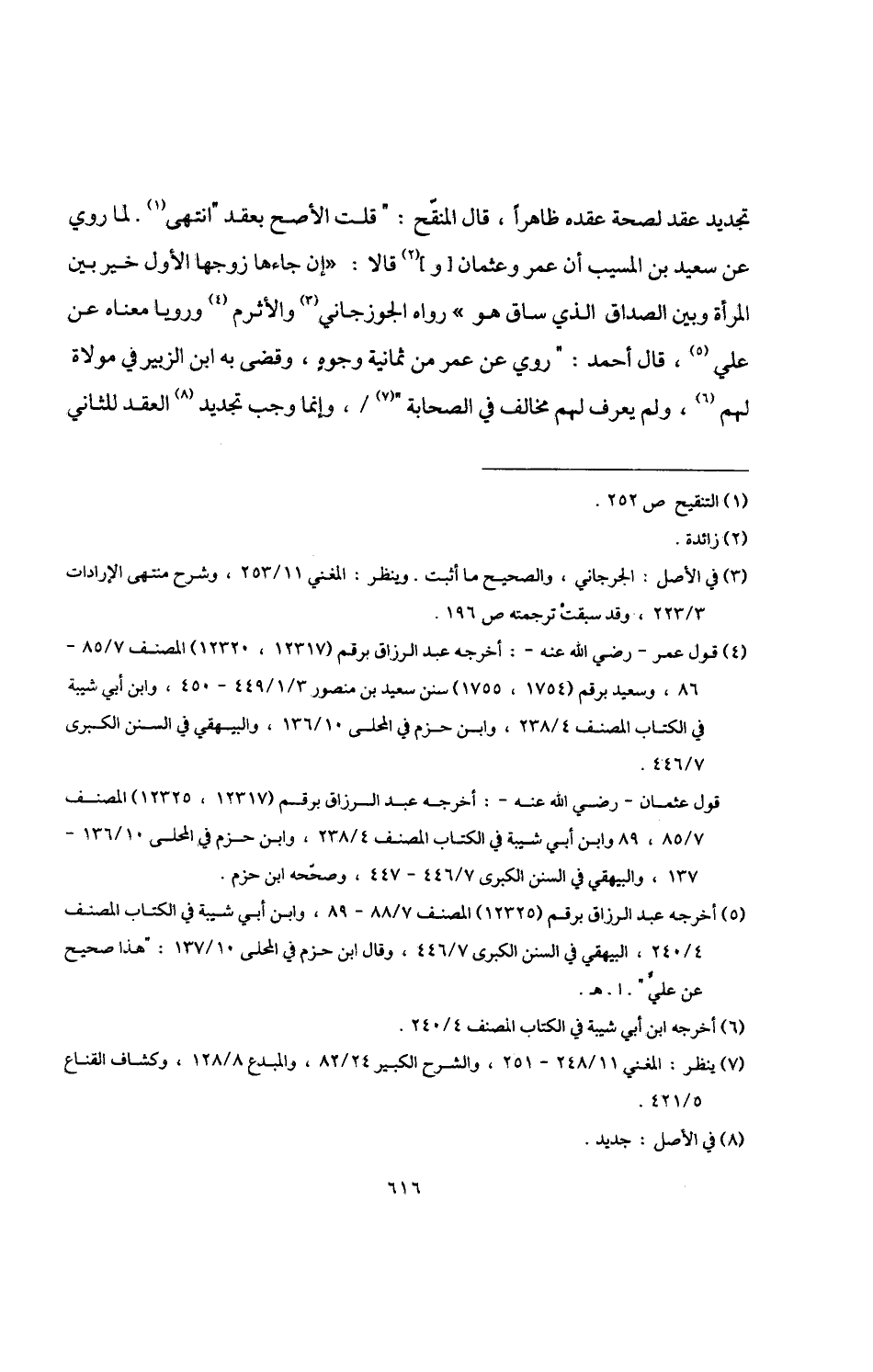قول عثمان -رضي اللَّه عنه-: أخرجه عبد الرزاق برقم (12317، 12325) المصنف 7/ 85، 89 وابن أبي شيبة في الكتاب المصنف 4/ 238، وابن حزم في المحلى 10/ 136 - 137,البيهقي في السنن الكبرى 7/ 446 - 447، وصحّحه ابن حزم.