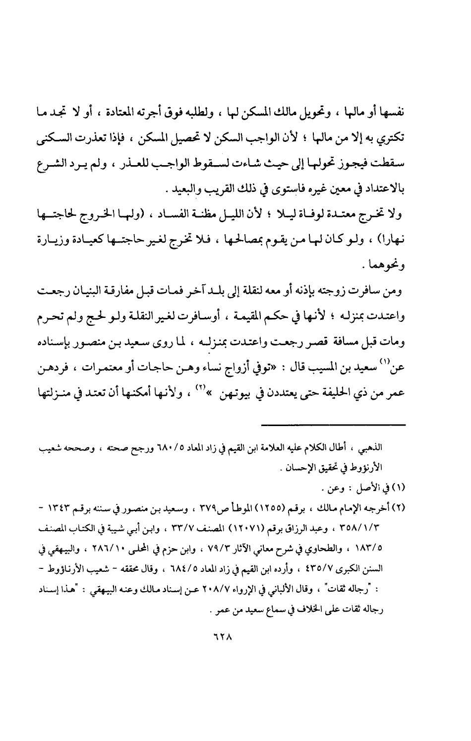 (¬2) أخرجه الإمام مالك، برقم (1255) الموطأ ص 379، وسعيد بن منصور في سننه برقم 1343 - 3/ 1/ 358، وعبد الرزاق برقم (12071) المصنف 7/ 33، وابن أبي شيبة في الكتاب المصنف 5/ 183، والطحاوي في شرح معاني الآثار 3/ 79، وابن حزم في المحلى 10/ 286، والبيهقي في السنن الكيرى 7/ 435، وأرده ابن القيم في زاد المعاد 5/ 684، وقال محققه -شعيب الأرناؤوط-: "رجاله ثقات"، وقال الألباني في الإرواء 7/ 208 عن إسناد مالك وعنه البيهقي: "هذا إسناد رجاله ثقات على الخلاف في سماع سعيد من عمر.
