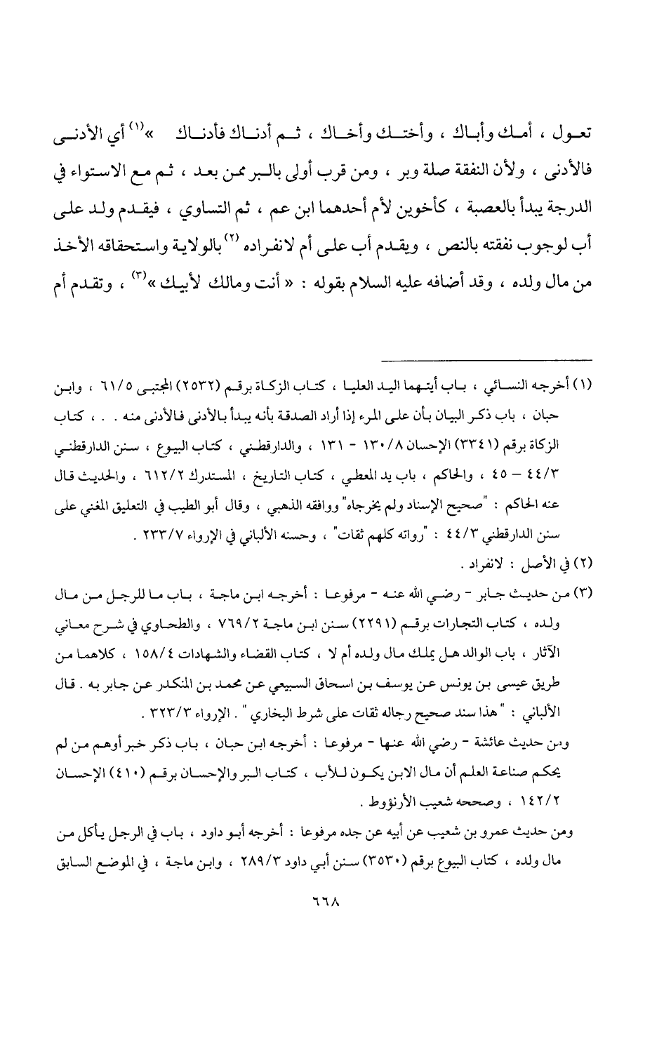 (¬3) من حديث جابر -رضي اللَّه عنه- مرفوعا: أخرجه ابن ماجة، باب ما للرجل من مال ولده، كتاب التجارات برقم (2291) سنن ابن ماجة 2/ 769، والطحاوي في شرح معاني الآثار، باب الوالد هل يملك مال ولده أم لا، كتاب القضاء والشهادات 4/ 158، كلاهما من طريق عيسى بن يونس عن يوسف بن اسحاق السبيعي عن محمد بن المنكدر عن جابر به. قال الألباني: "هذا سند صحيح رجاله ثقات على شرط البخاري". الإرواء 3/ 323.