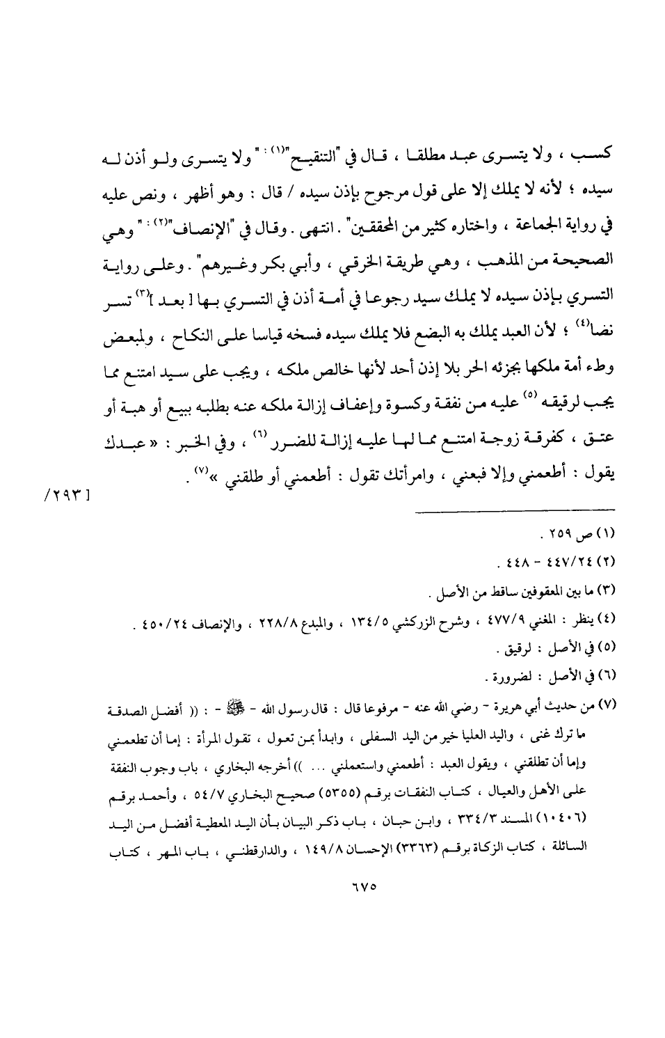 (¬4) ينظر: المغني 9/ 477، وشرح الزركشي 5/ 134، والمبدع 8/ 228، والإنصاف 24/ 450.