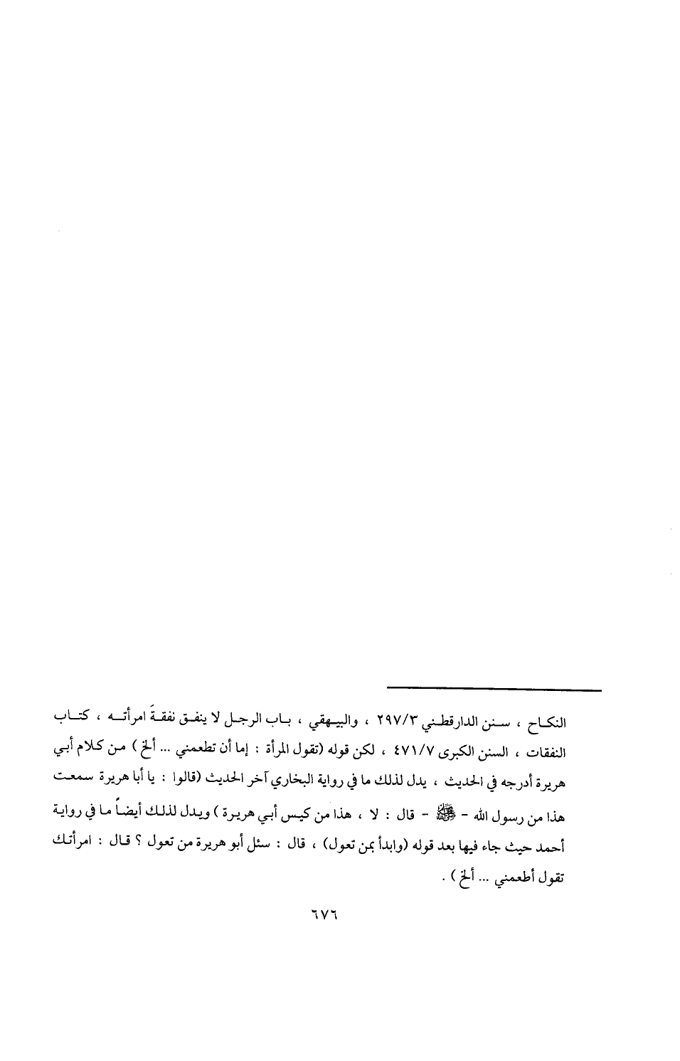 = النكاح، سنن الدارقطني 3/ 297، والبيهقي، باب الرجل لا ينفق نفقةَ امرأته، كتاب النفقات، السنن الكبرى 7/ 471، لكن قوله (تقول المرأة: إما أن تطعمني. . . الخ) من كلام أبي هريرة أدرجه في الحديث، يدل لذلك ما في رواية البخاري آخر الحديث (قالوا: يا أبا هريرة سمعت هذا من رسول اللَّه -صلى اللَّه عليه وسلم- قال: لا، هذا من كيس أبي هريرة) وبدل لذلك أيضًا ما في رواية أحمد حيث جاء فيها بعد قوله (وابدأ بمن تعول)، قال: سئل أبو هريرة من تعول؟ قال: امرأتك تقول أطعمني. . . الخ).