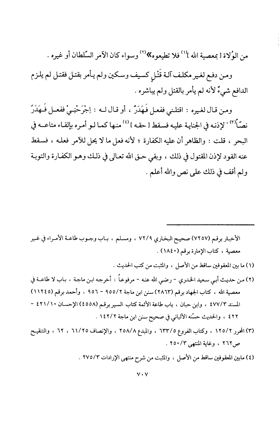 (¬4) ما بين المعقوفين ساقط من الأصل، والمثبت من شرح منتهى الإرادات 3/ 275.
