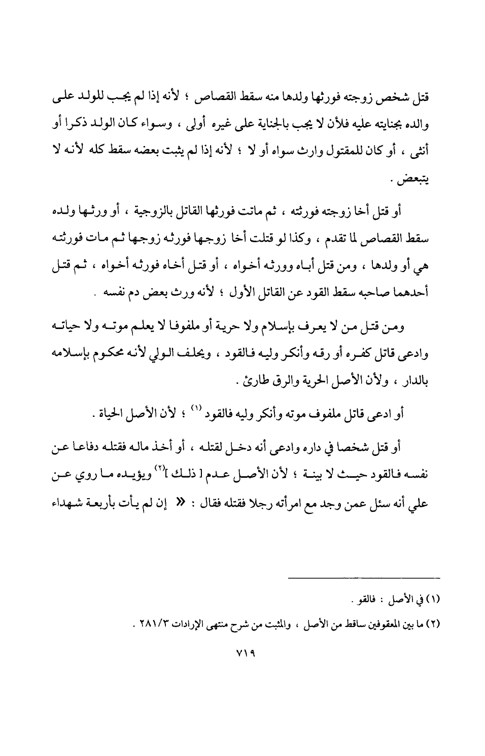 (¬2) ما بين المعقوفين ساقط من الأصل، والمثبت من شرح منتهى الإرادات 3/ 281.