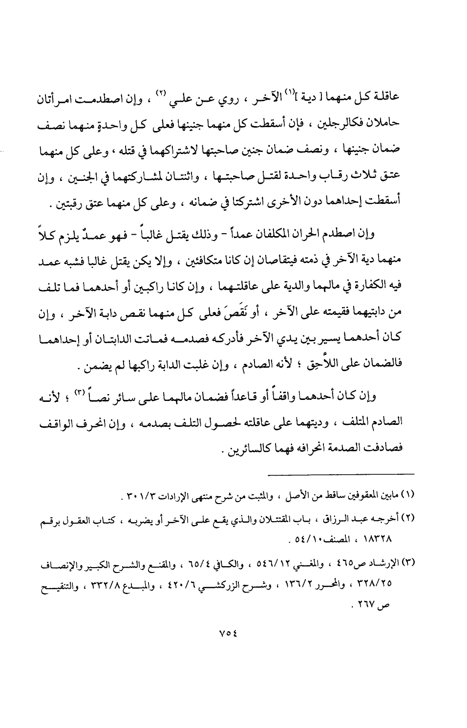 (¬2) أخرجه عبد الرزاق، باب المقتتلان والذي يقع على الآخر أو يضربه، كتاب العقول برقم 18328، المصنف 10/ 54.