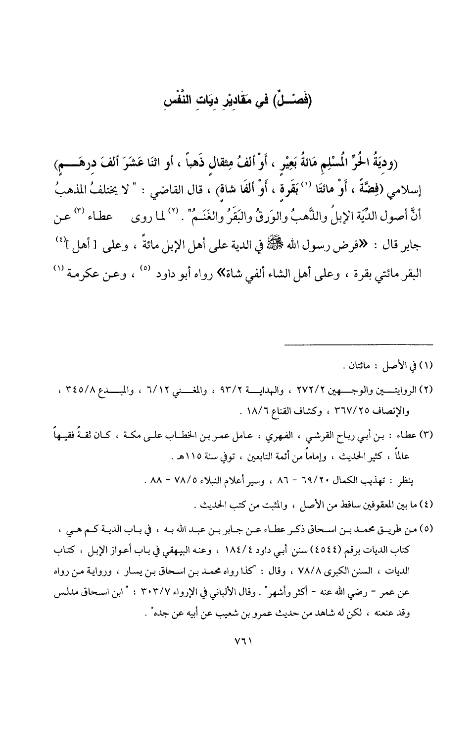 (¬5) من طريق محمد بن اسحاق ذكر عطاء عن جابر بن عبد اللَّه به، في باب الدية كم هي، كتاب الديات برقم (4544) سنن أبي داود 4/ 184، وعنه البيهقي في باب أعواز الإبل، كتاب الديات، السنن الكبرى 8/ 78، وقال: "كذا رواه محمد بن اسحاق بن يسار، ورواية من رواه عن عمر -رضي اللَّه عنه- أكثر وأشهر". وقال الألباني في الإرواء 7/ 303: "ابن اسحاق مدلس وقد عنعنه، لكن له شاهد من حديث عمرو بن شعيب عن أبيه عن جده".