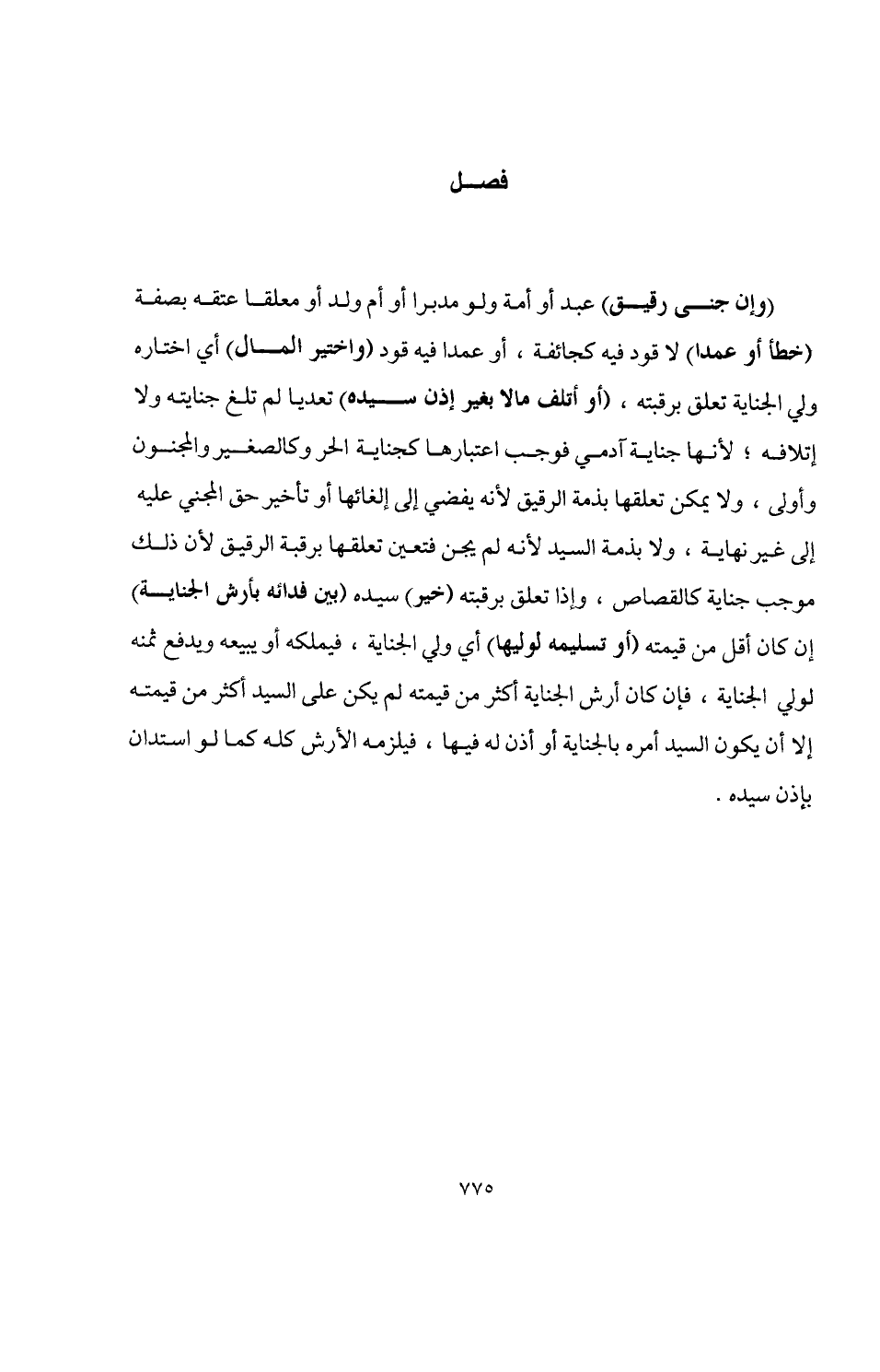 (وإن جنى رقيق) عبد أو أمة ولو مدبرا أو أم ولد أو معلقا عتقه بصفة (خطأ أو عمدا) لا قود فيه كجائفة، أو عمدا فيه قود (واختير المال) أي اختاره ولي الجناية تعلق برقبته، (أو أتلف مالا بغير إذن سيده) تعديا لم تلغ جنايته ولا إتلافه؛ لأنها جناية آدمي فوجب اعتبارها كجناية الحر وكالصغير والمجنون وأولى، ولا يمكن تعلقها بذمة الرقيق لأنه يفضي إلى إلغائها أو تأخير حق المجني عليه إلى غير نهاية، ولا بذمة السيد لأنه لم يجن فتعين تعلقها برقبة الرقيق لأن ذلك موجب جناية كالقصاص، وإذا تعلق برقبته (خير) سيده (بين فدأئه بأرش الجناية) إن كان أقل من قيمته (أو تسليمه لوليها) أي ولي الجناية، فيملكه أو يبيعه ويدفع ثمنه لولي الجناية، فإن كان أرش الجناية أكثر من قيمته لم يكن على السيد أكثر من قيمته إلا أن يكون السيد أمره بالجناية أو أذن له فيها، فيلزمه الأرش كله كما لو استدان بإذن سيده.