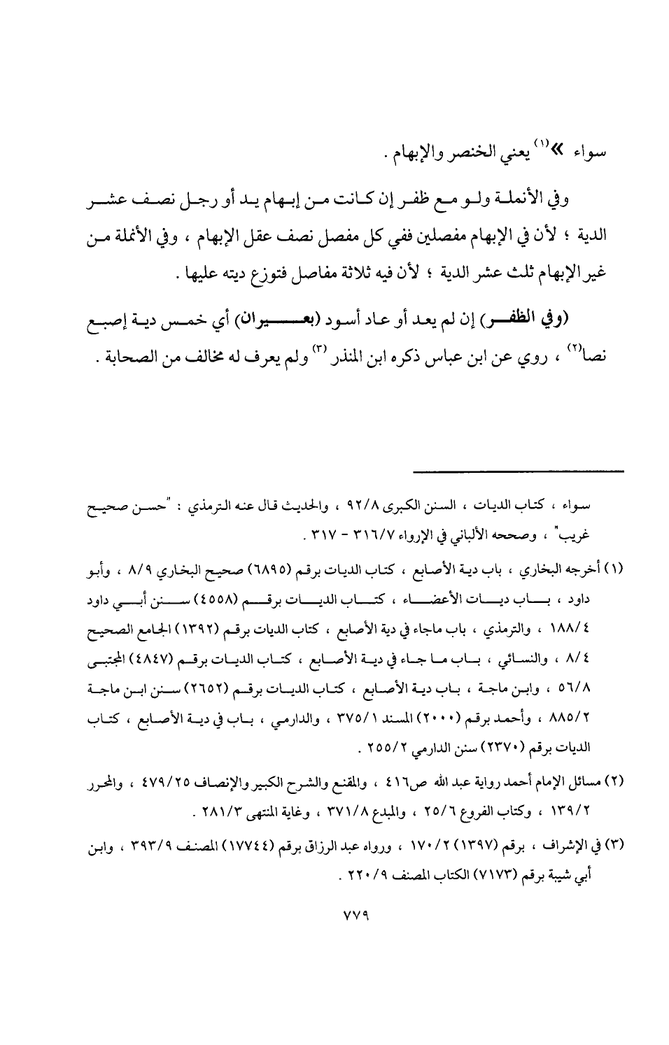 (¬1) أخرجه البخاري، باب دية الأصابع، كتاب الديات برقم (6895) صحيح البخاري 9/ 8، وأبو داود، باب ديات الأعضاء، كتاب الديات برقم (4558) سنن أبي داود 4/ 188، والترمذي، باب ماجاء في دية الأصابع، كتاب الديات برقم (1392) الجامع الصحيح 4/ 8، والنسائي، باب ما جاء في دية الأصابع، كتاب الديات برقم (4847) المجتبى 8/ 56، وابن ماجة، باب دية الأصابع، كتاب الديات برقم (2652) سنن ابن ماجة 2/ 885، وأحمد برقم (2000) المسند 1/ 375، والدارمي، باب في دية الأصابع، كتاب الديات برقم (2370) سنن الدارمي 2/ 255.